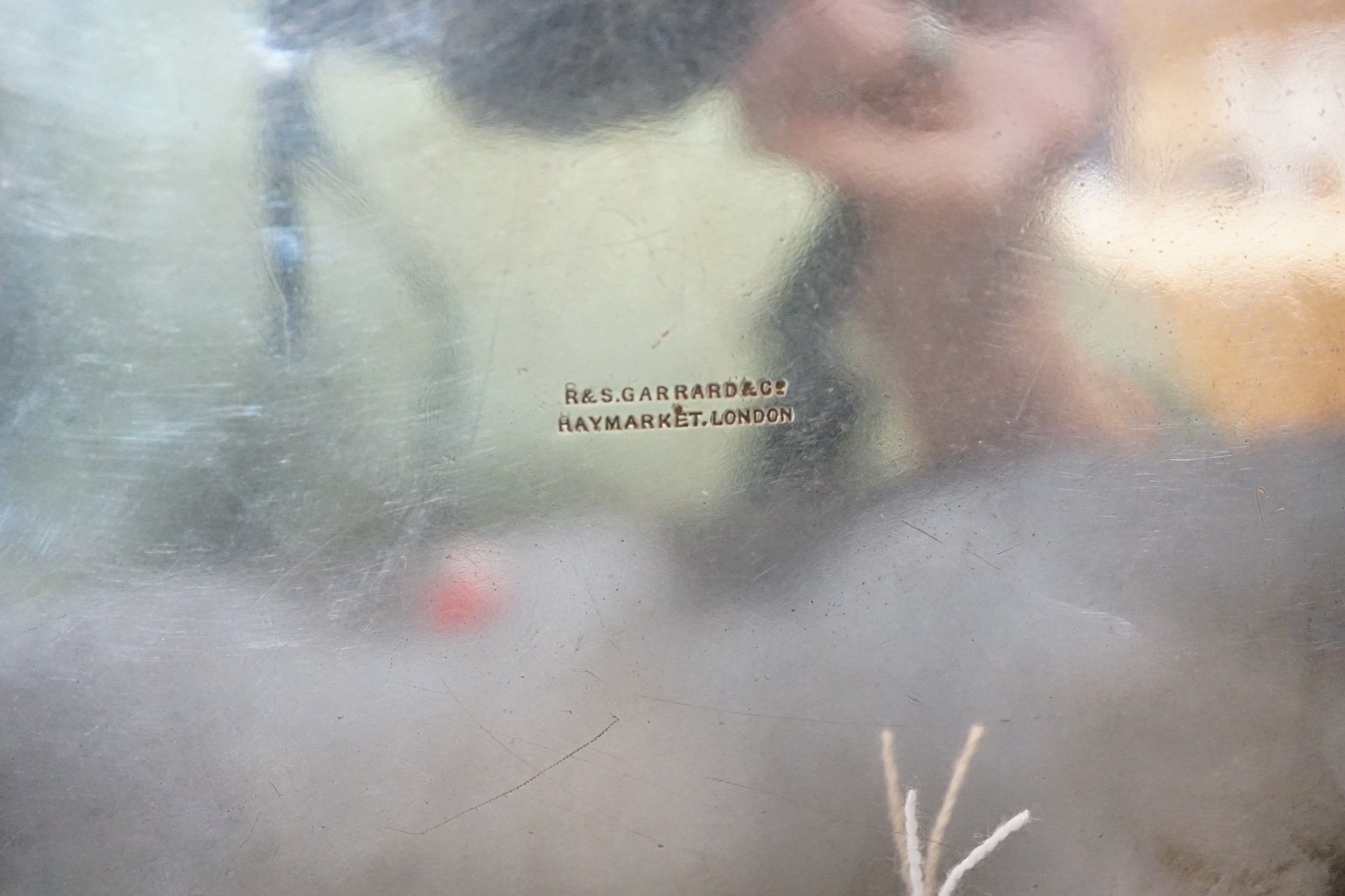 Cover silvering worn revealing nickel colour. Retailed by R & S Garrard & Co., Haymarket, London.