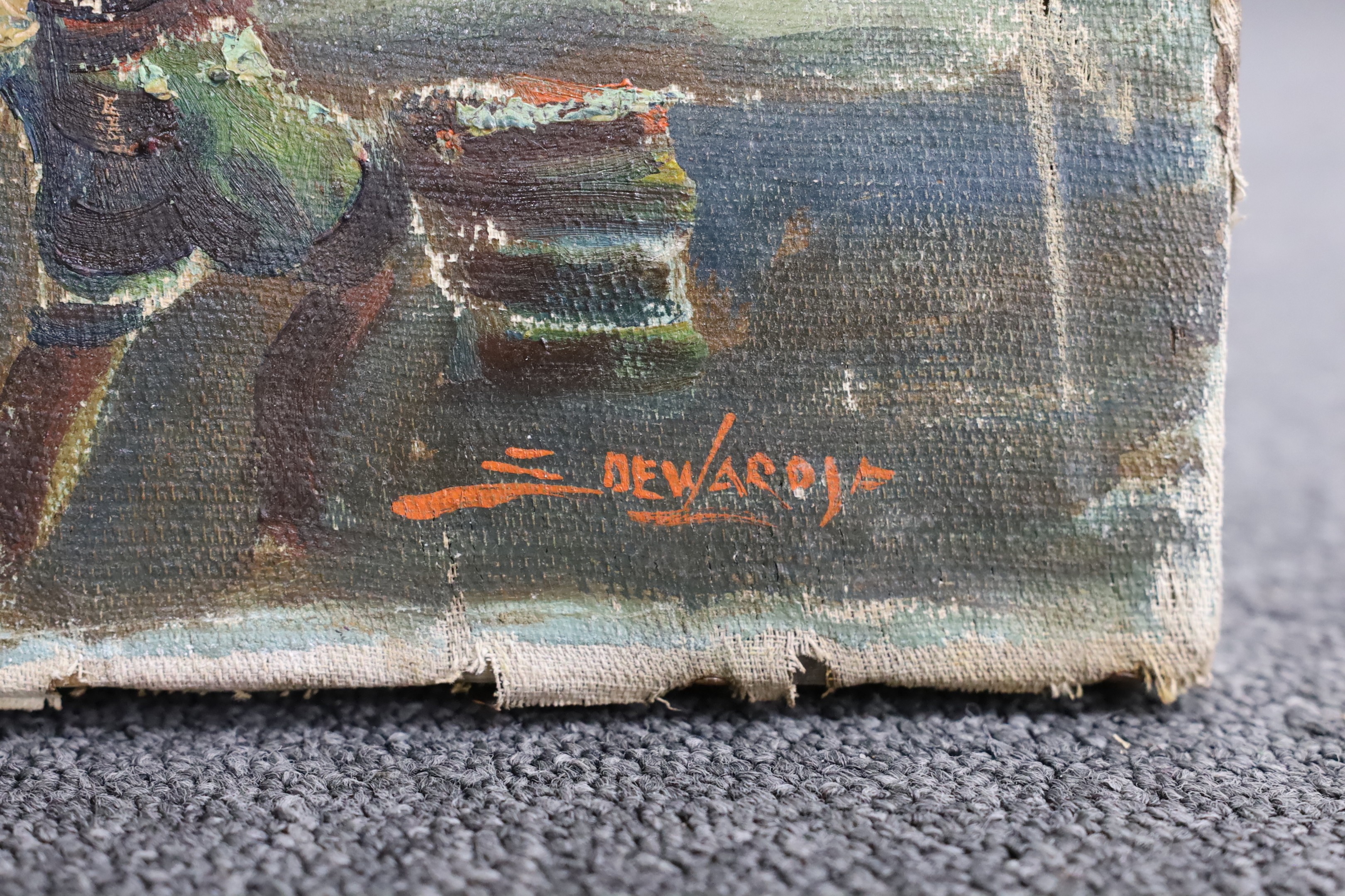 Lot 1744 , S. de Wardje, oil on canvas, South African? village scene, signed, 40 x 79cm, unframed