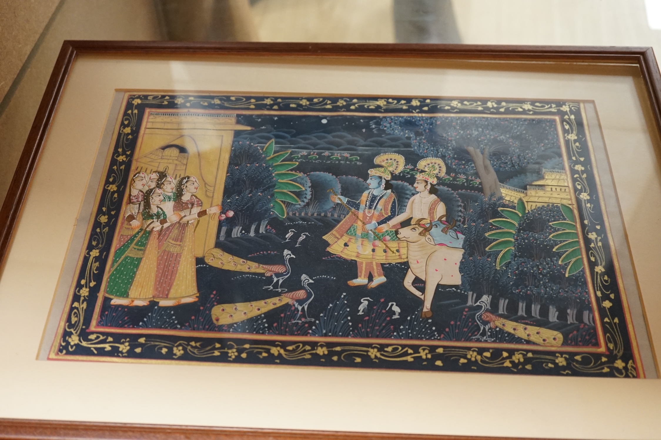 Lot 1534 , An Indo Persian gouache on fabric, figures and attendants, together with two similar colour prints, largest 22 x 34cm
