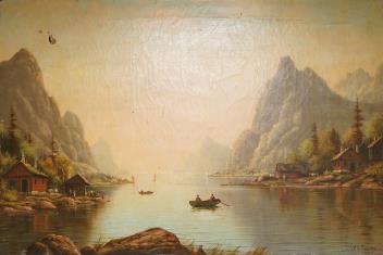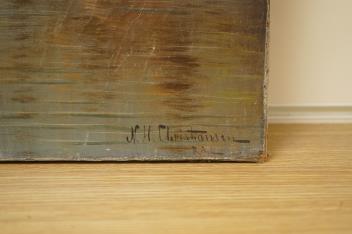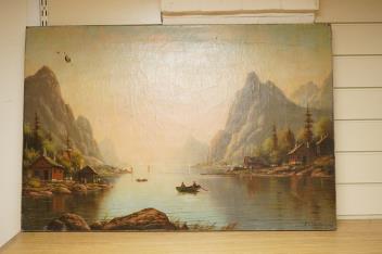 Lot 1731 , Niels Hans Christiansen (Dutch, 1850-1922), oil on canvas, Continental mountainous riverscape, signed, 60 x 91cm, unframed