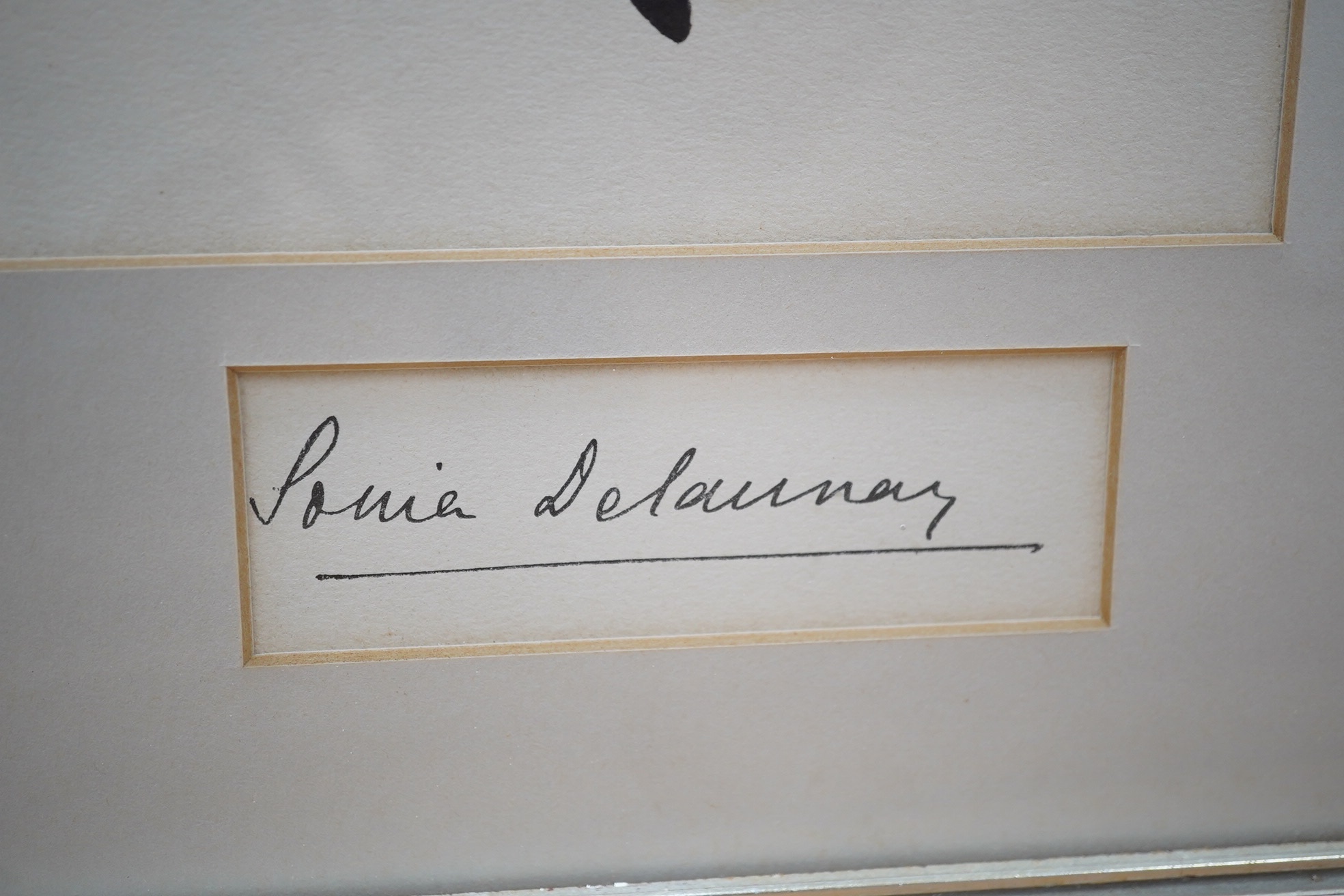 Lot 657 , Sonia Delaunay, lithographic pochoir, designs for dresses, see label verso, 1925, signed. Condition - fair