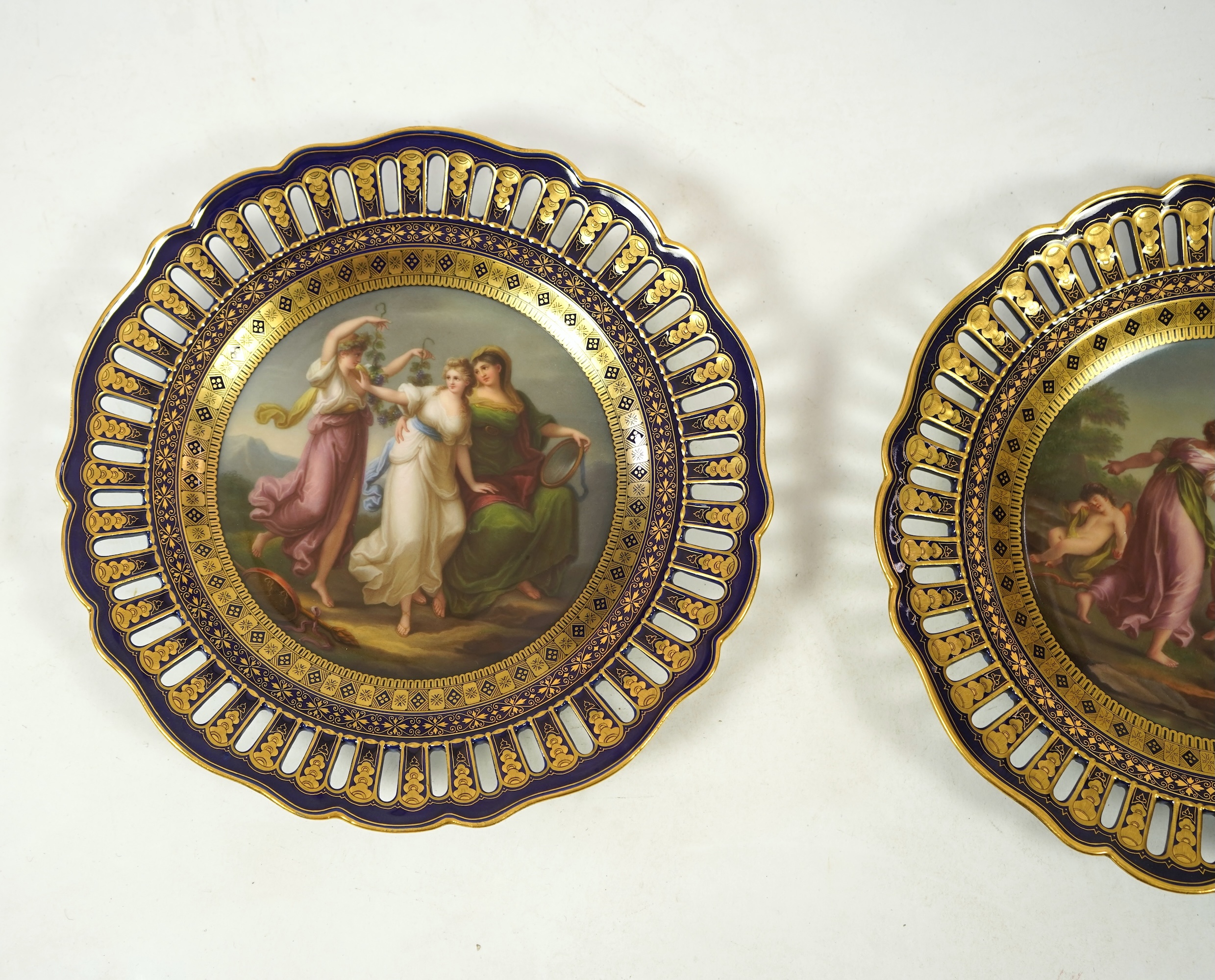 A pair of 19th century Meissen 'Three Graces' cabinet plates, after Angelica Kaufmann, 24cm in diameter. Condition - good