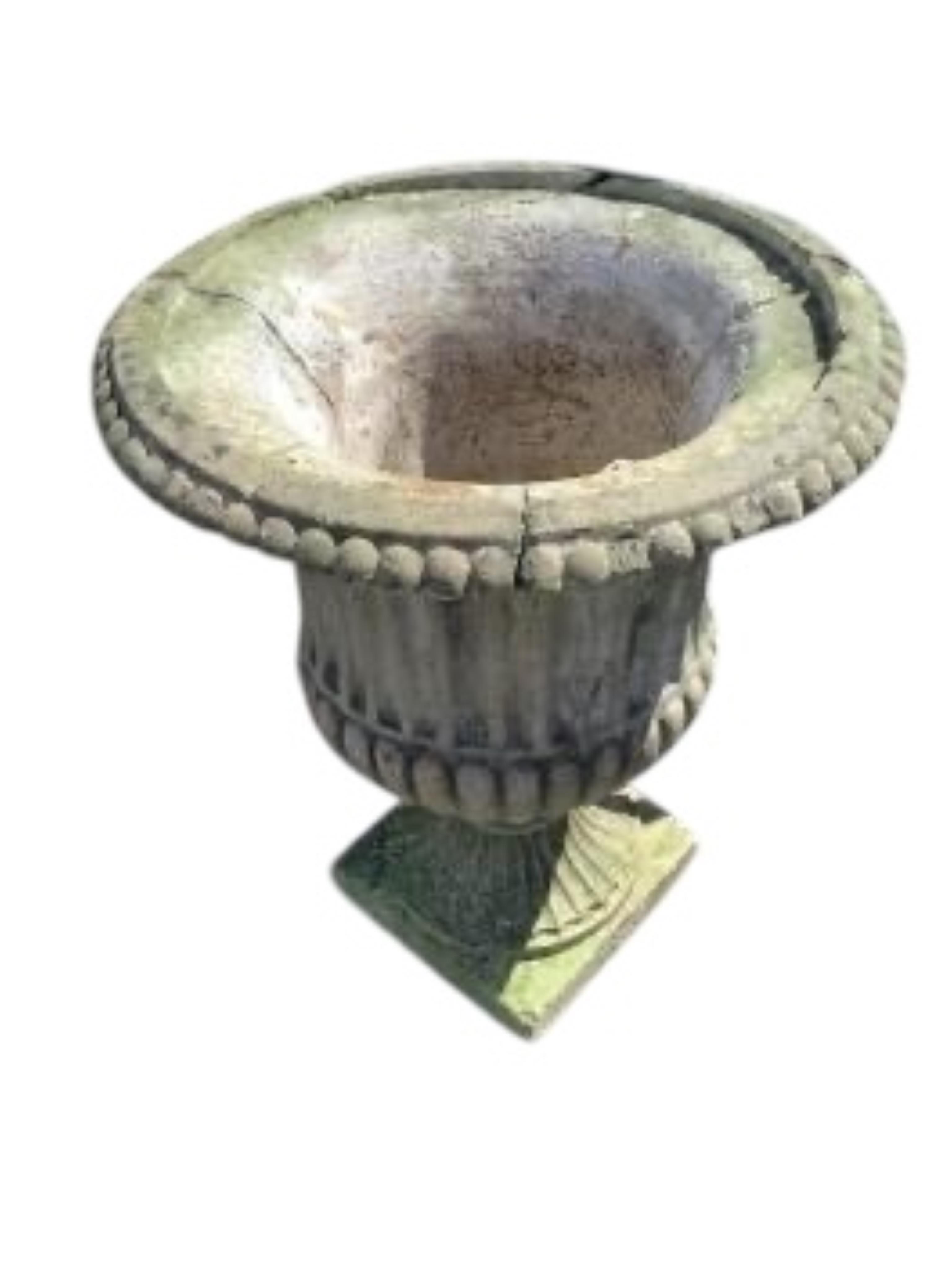 Lot 45 , A pair of reconstituted stone campana garden urns on pedestal bases, diameter 46cm, height 58cm
