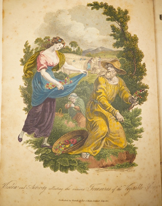 ° Green, Thomas - The Universal Herbal; or, Botanical, Medical, and Agricultural Dictionary. Containing an account of all the known plants in the world, arranged according to the Linnean system ... 1st edition, 2 vols. with hand coloured pictorial engraved title, 2 hand coloured frontispieces and 103 (ex105) hand coloured plates; sometime rebound black calf, gilt tooled borders and gilt decorated and lettered panelled spines, folio. Liverpool, (1820)
