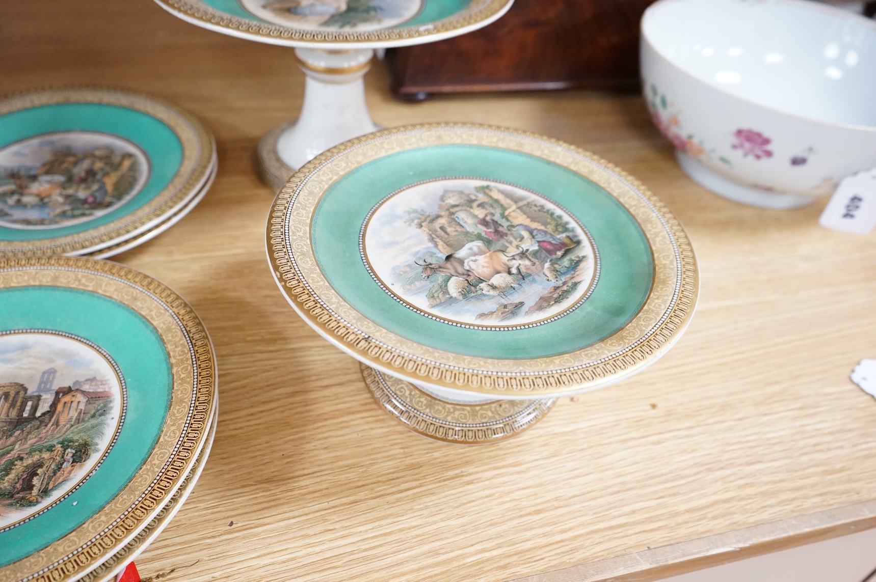 Lot 406 , A Victorian multicolour transfer printed dessert service, by F & R Pratt, largest 23cm diameter