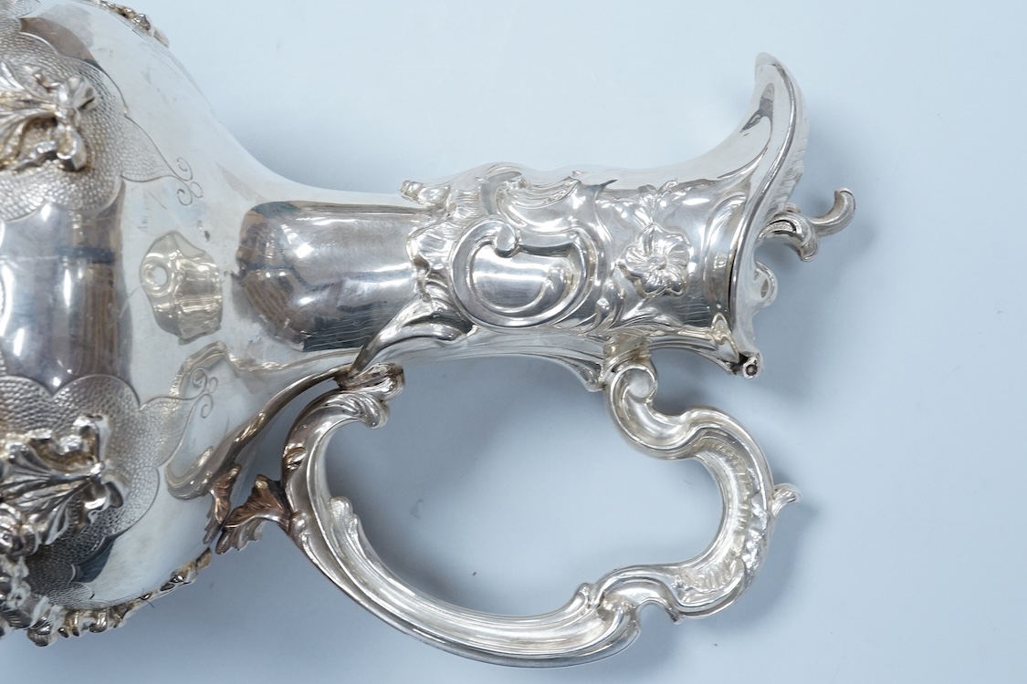 Lot 834 , A continental white metal (stamped 0.925) ewer, decorated with floral garlands, height 28cm, 25.4oz.