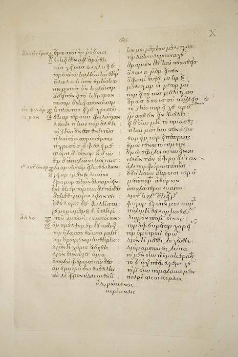 Lot 1024 , Anacreon. Anakreontos Teiou Symposiaka emiambia. Anacreontis Teii Convivialia Semiambia.