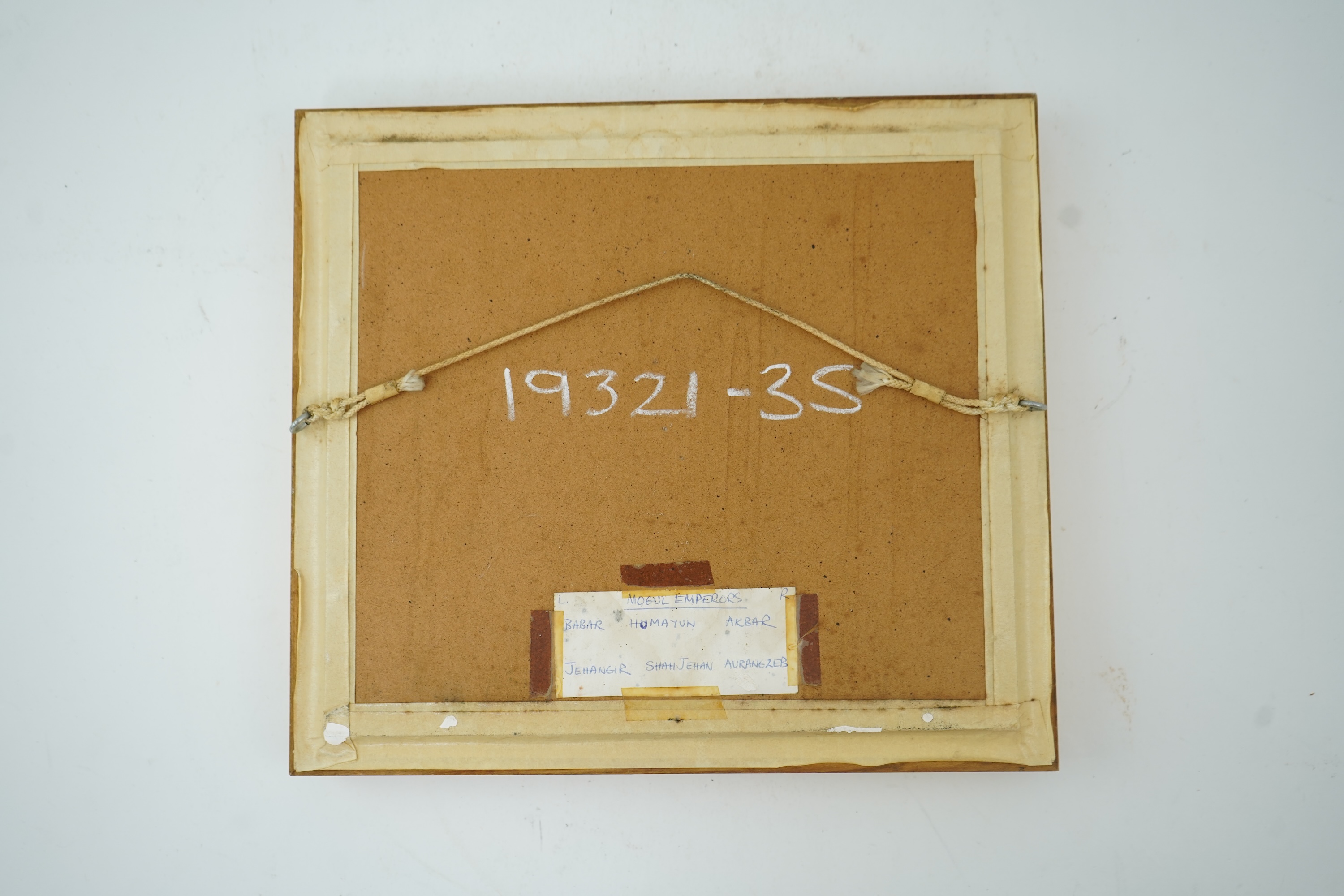 Lot 5 , Indian School , (Late 19th century), A set of six portrait miniatures of Mughal rulers, Watercolour on Ivory, Oval, each approximately 6.2cm x 4.8cm