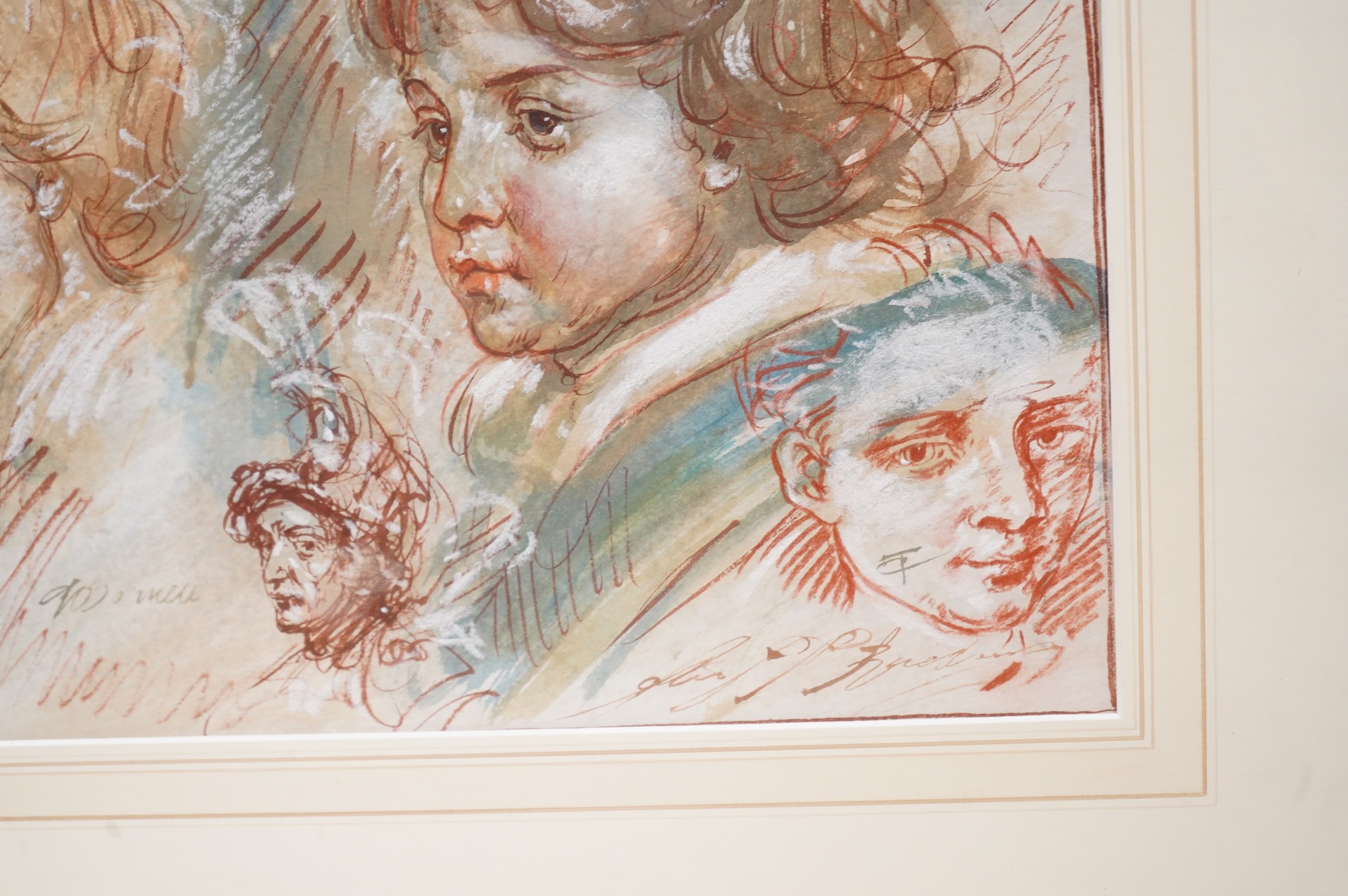 Tom O'Donnell (b.1944), Classical portrait studies, monogrammed, mixed media heightened with white, 26 x 41cm