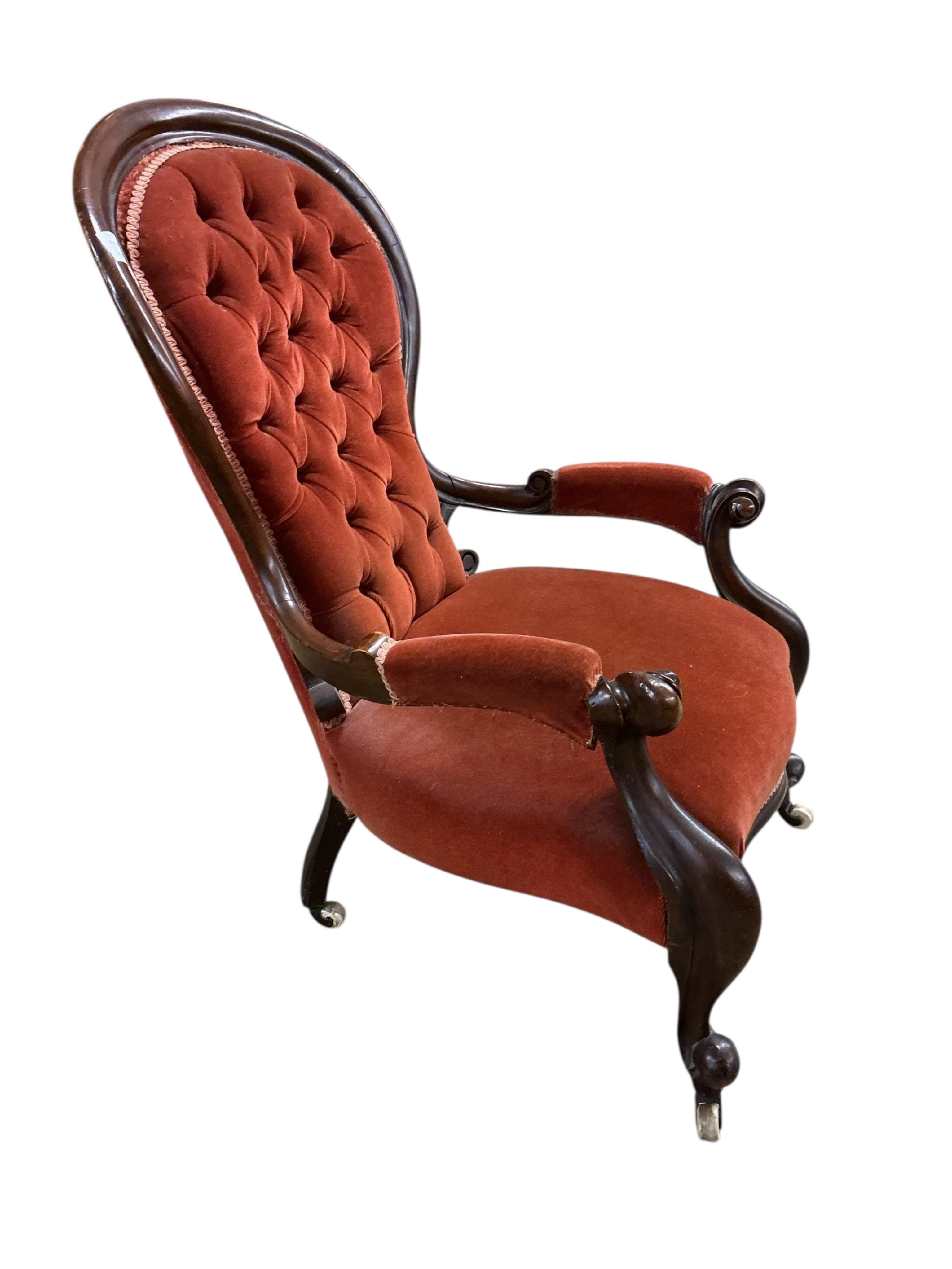 Lot 1233 , A Victorian mahogany button-back mahogany armchair, width 67cm, depth 65cm, height 99cm