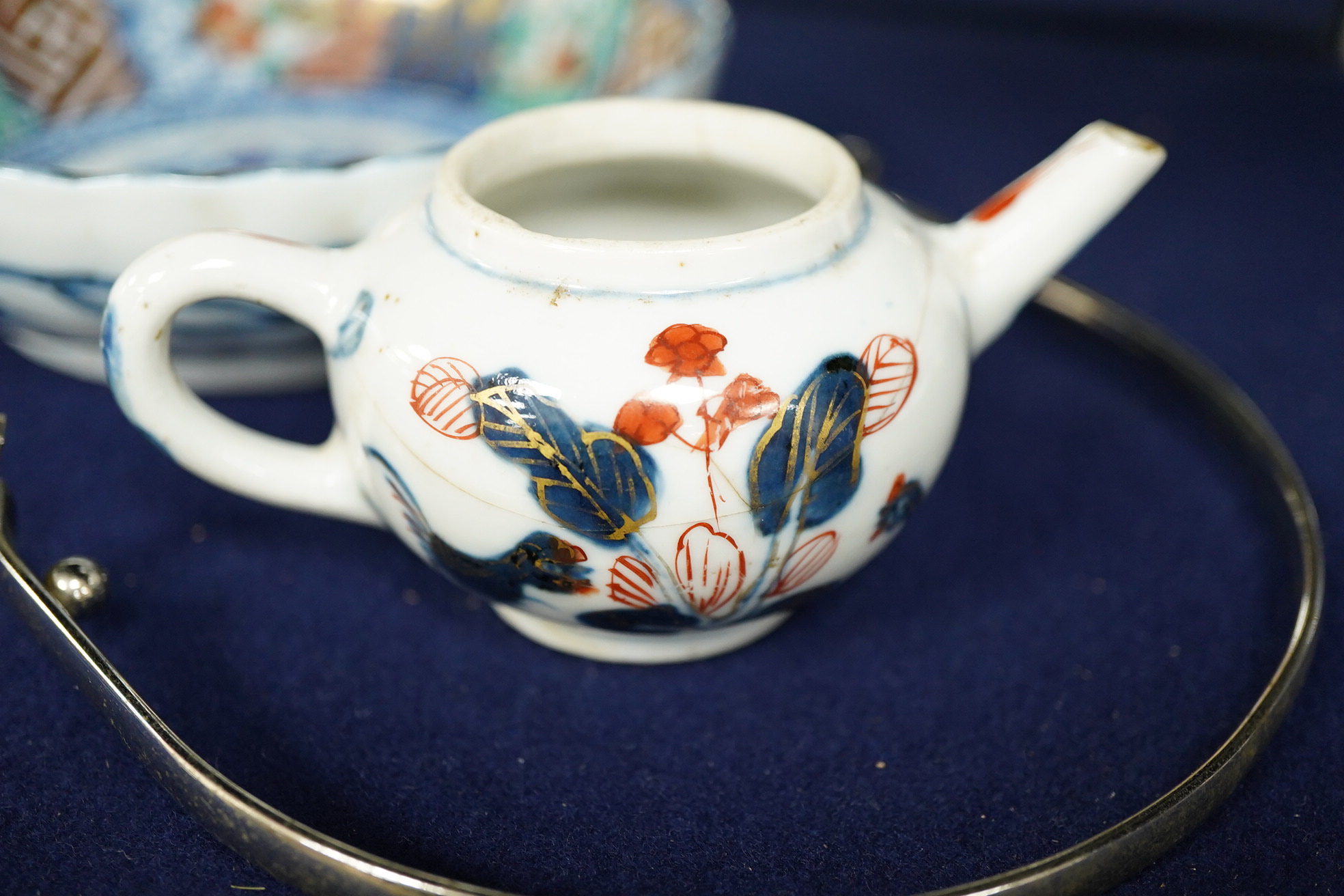 A Japanese Arita miniature teapot, late 17th century and a later dish, 13.5cm diameter