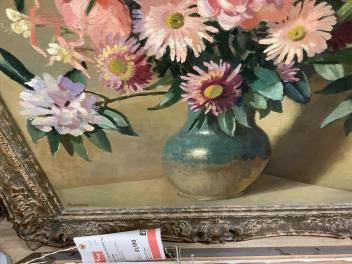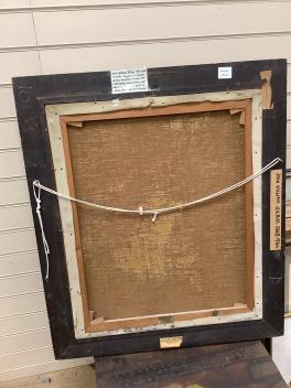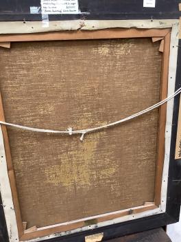 The two pale spots at the shoulder of the jug are painted reflections, image 7; one white flake of oil paint to centre, image 8. Frame good. Reverse side images now shown.