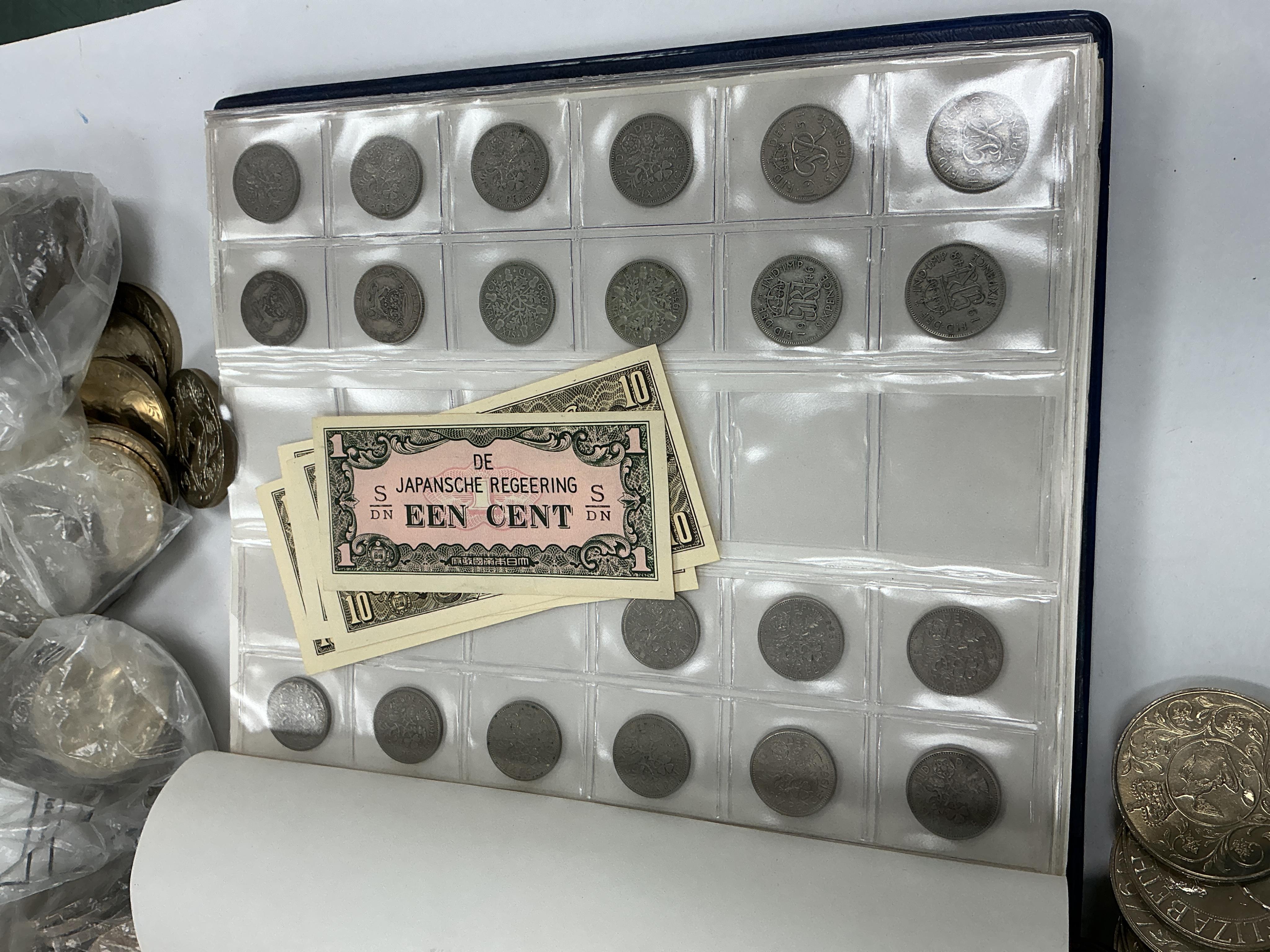 A large collection of Rhodesia, British and World coins and banknotes, highlights include Rhodesia proof four coin set, 1964, an album of Rhodesia banknotes, 1979, an album of Victoria to Elizabeth II coins, including some pre-1947 sixpences and threepences, pennies, half pennies and farthings etc, George VI, Festival of Britain crown, 1951, a large quantity of Elizabeth II, cupronickel commemorative crowns, a quantity of worn Victorian pennies, foreign circulated coinage, other banknotes, etc