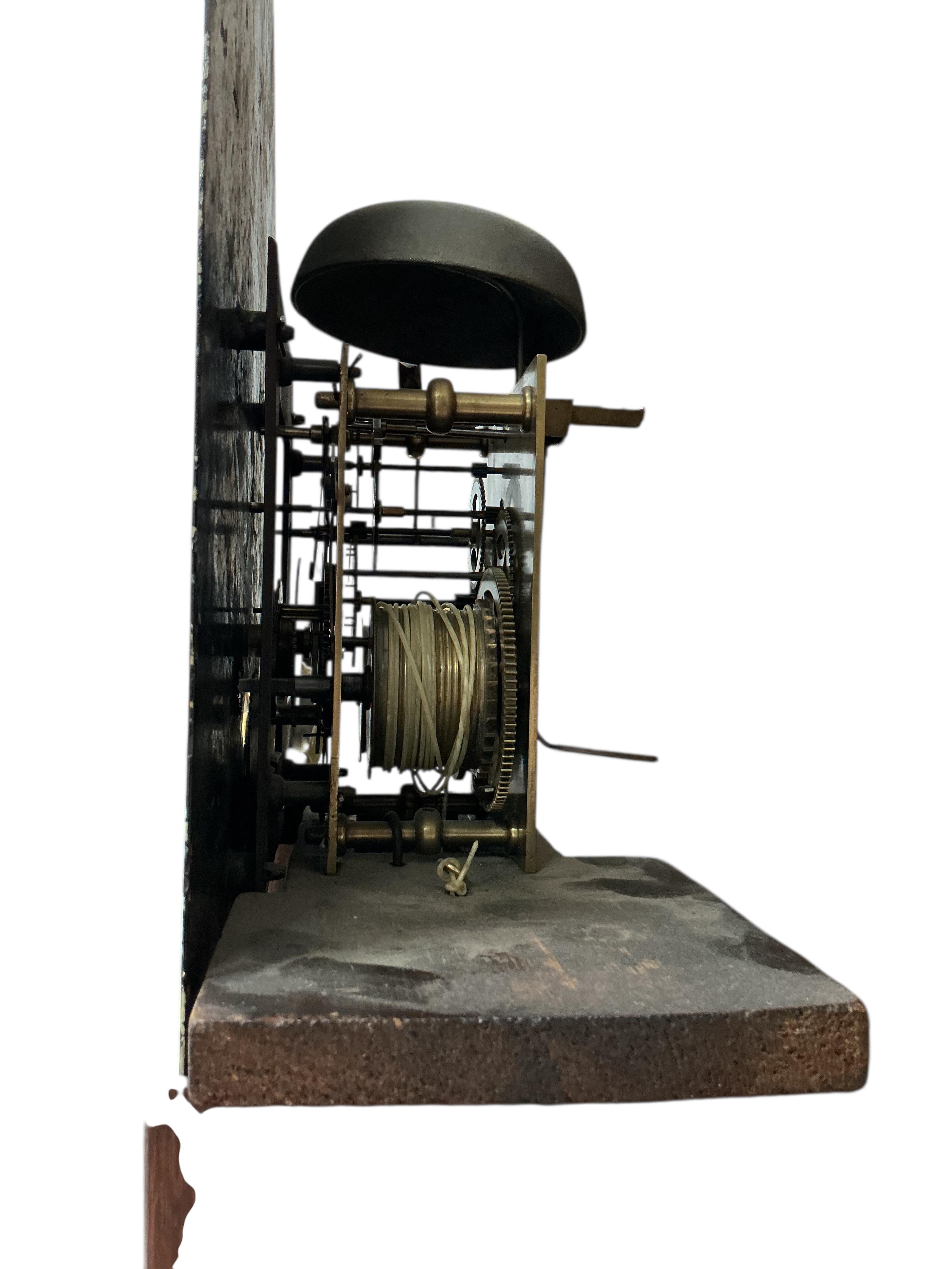 Lot 1115 , A George III oak eight day longcase clock, the arched painted enamel dial with Roman numerals and outer Arabic minutes, subsidiary seconds dial and calendar aperture, marked Joshua Smith, Leicester, height 216cm