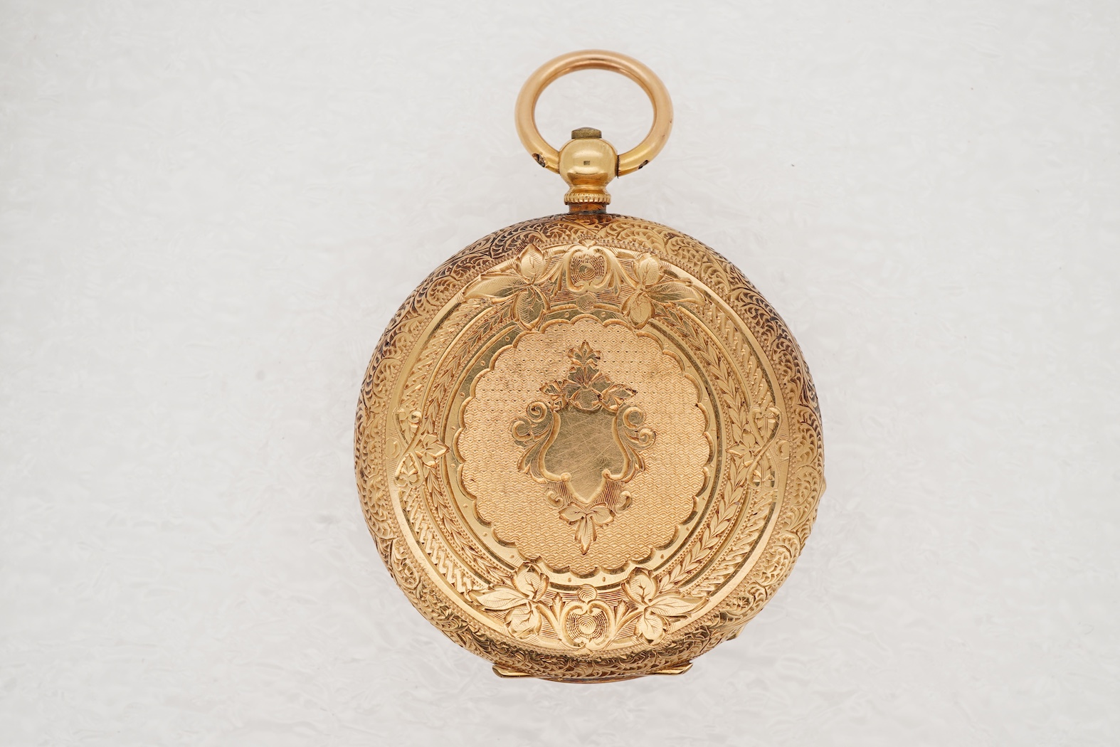 Lot 90 , A lady's early 20th century Swiss 18k open faced key wind fob watch