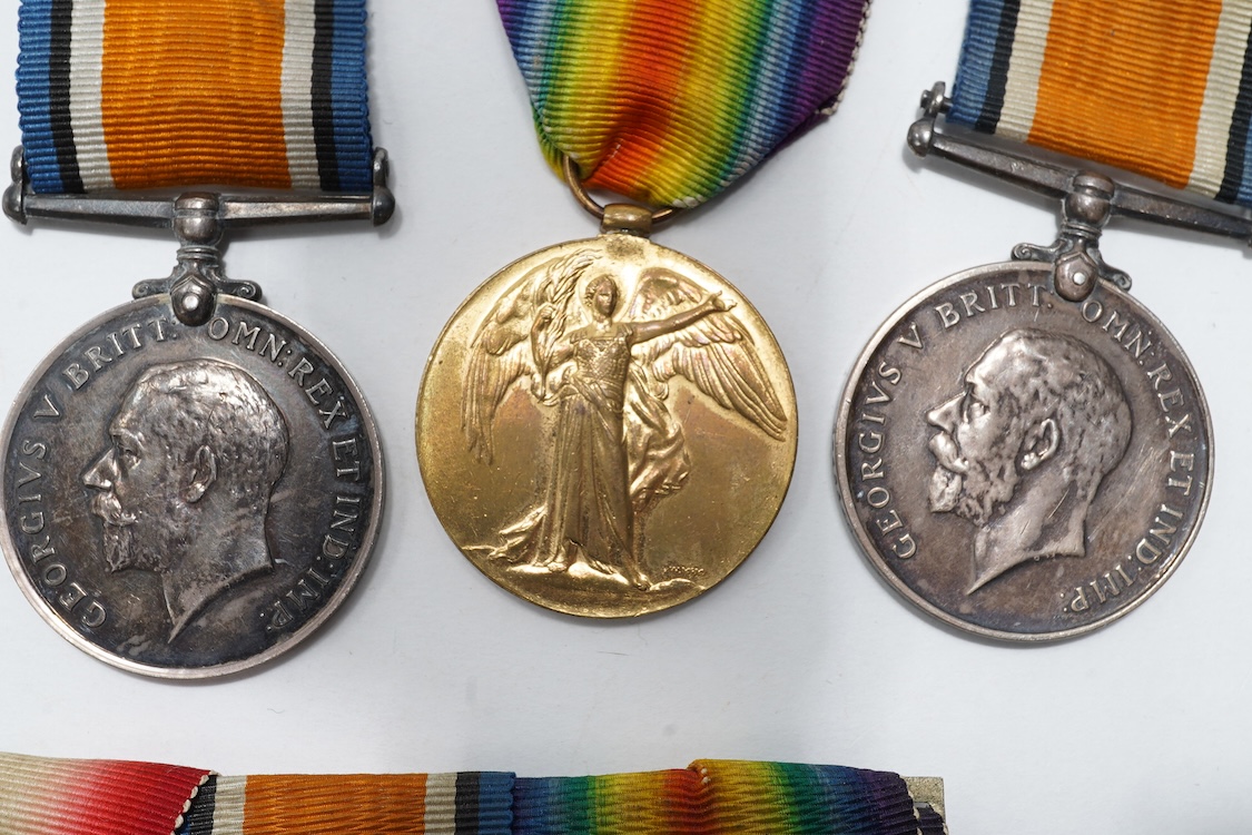 A collection of ten WWI and WW2 medals; a First World War trio awarded to T4-058250 Dvr. A.D. Vaughan. A.S.C., a 1914-1918 medal to G-45340 PTE. H. Sheere. Middlesex Reg., and a medal pair to 6380 PTE. H.L. Jacobi. 21st London Reg., together with five WWII medals including the France and Germany star, three Red Cross medals, the Catholic Association lapel badge, and a WWII card issue box addressed to F/Lt. (Dr.) R.B. Jacobi