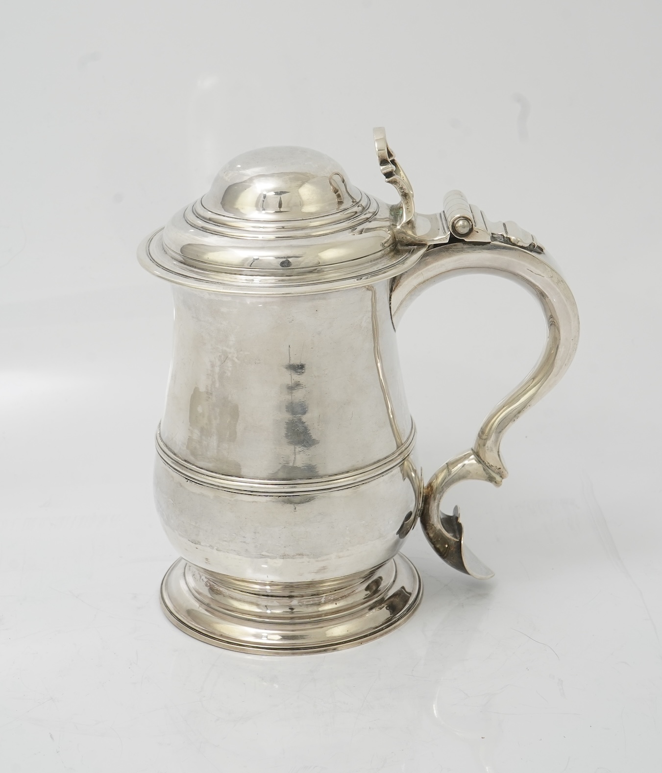 Lot 2 , A late George II silver tankard with hinged domed cover, by John Payne