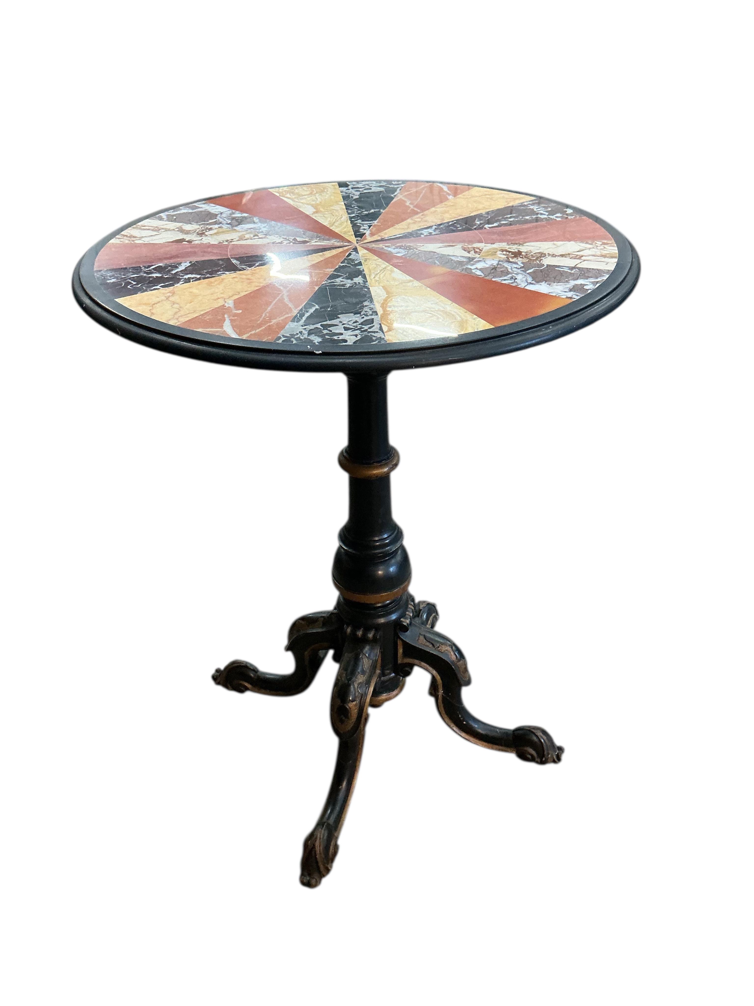 Lot 29 , A circular specimen marble occasional table on a Victorian ebonised tripod base, diameter 53cm, height 69cm
