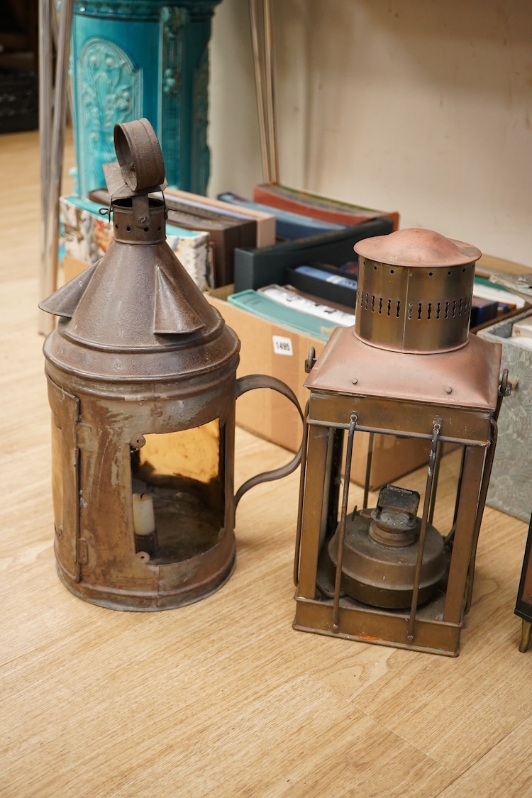 Lot 1497 , Four various styled lanterns, tallest 42cm high