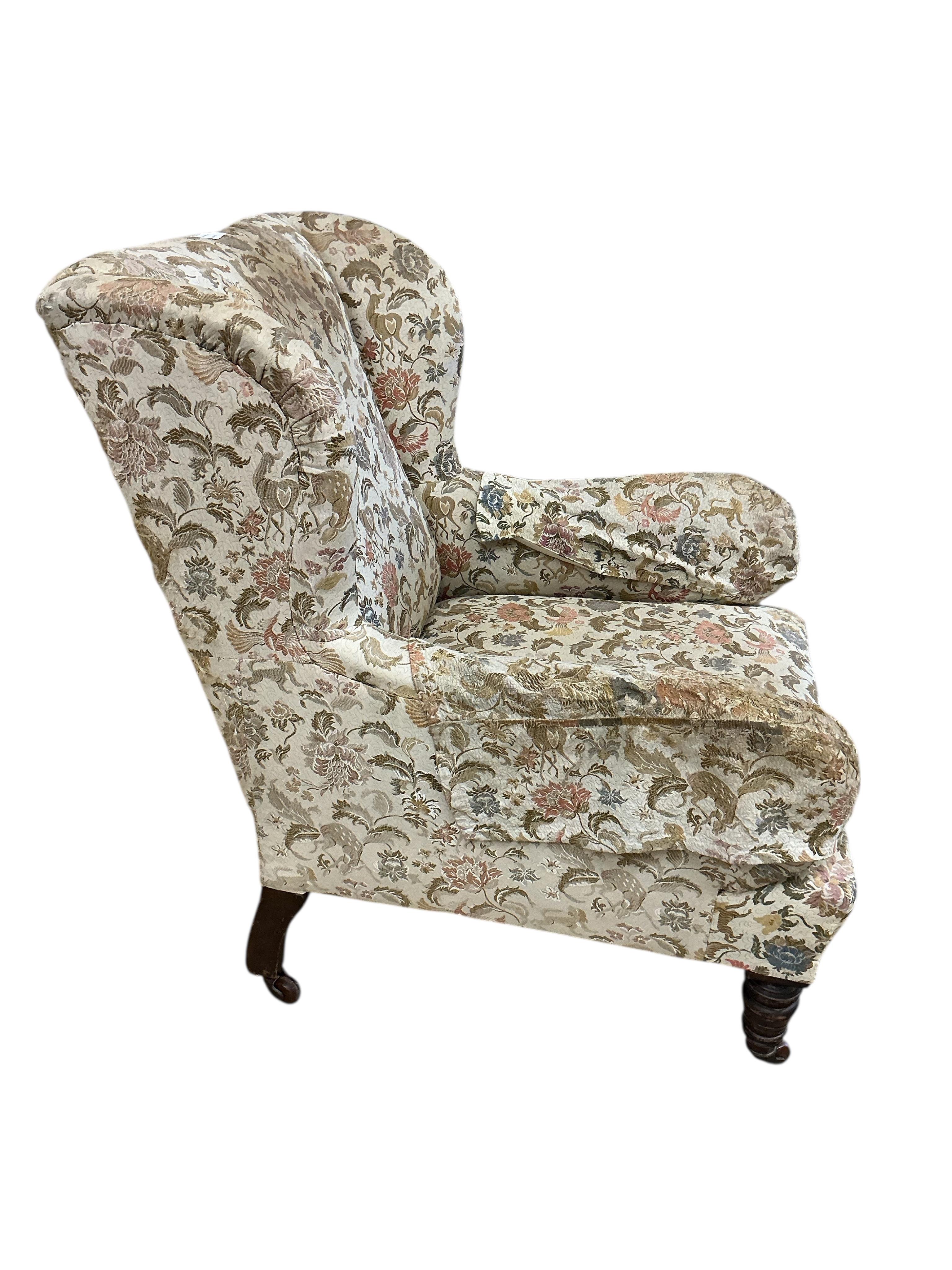Lot 1058 , A late Victorian upholstered wing armchair, width 75cm, depth 78cm, height 91cm