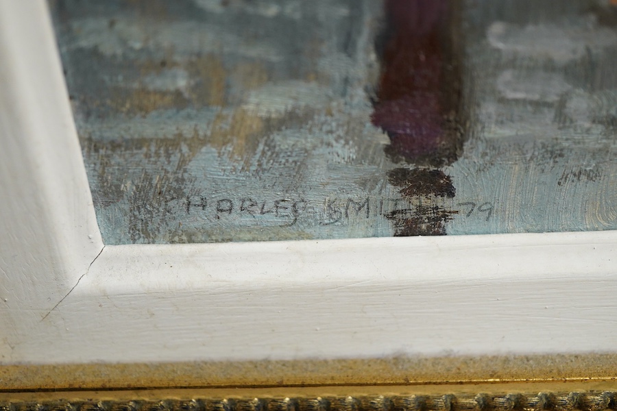 Charles Smith (Wapping Group, 1913-2003), 'Barny Arms', signed and dated '79, Chelsea Arts Society inscribed label verso, oil on board, 21 x 29cm