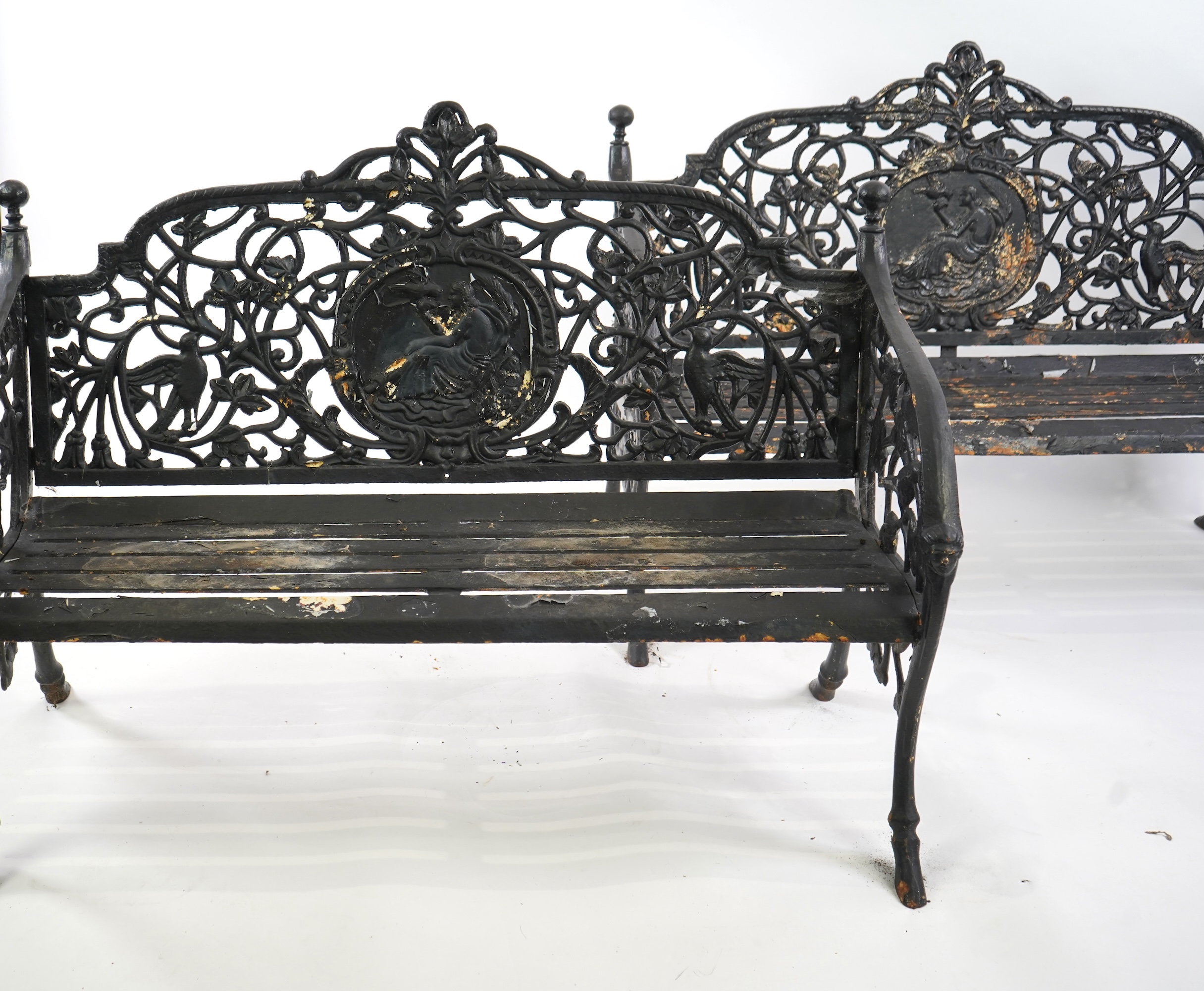 Lot 330 , A pair of Victorian Coalbrookdale style painted cast iron medallion garden benches