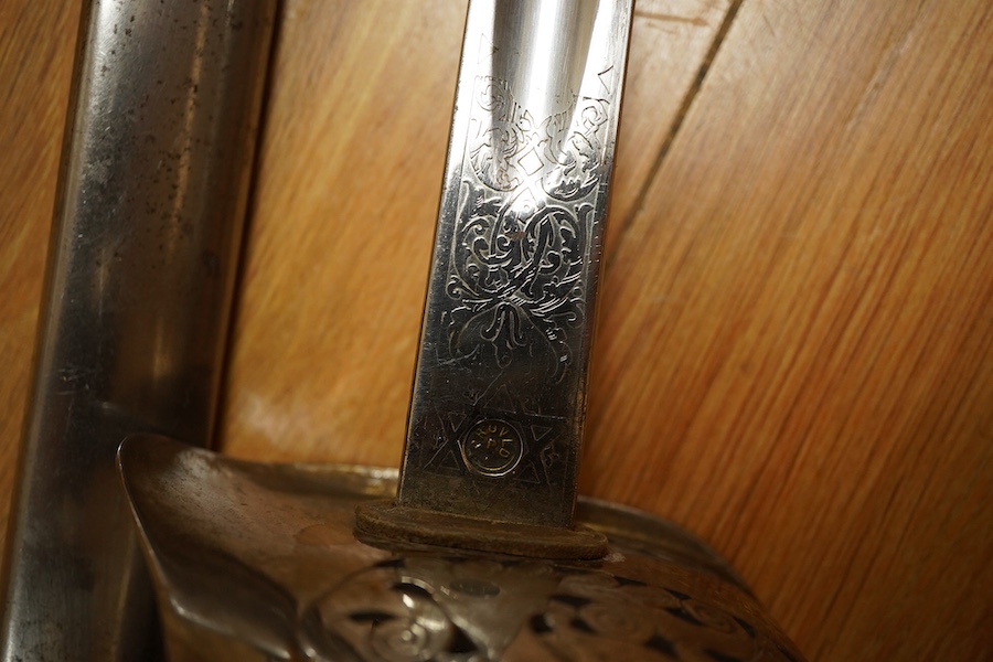 Lot 8 , An 1897 pattern late Victorian infantry officer’s sword, etched and polished blade, with regulation hilt, in its iron scabbard
