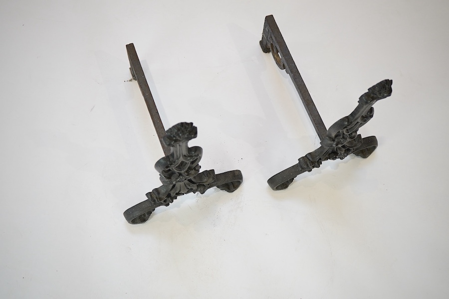A pair of cast iron fire dogs, 53cm high