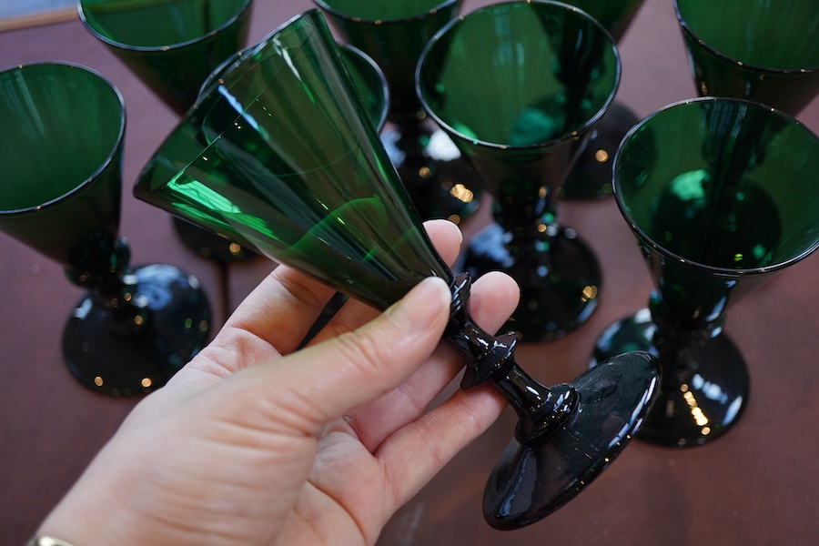 Lot 25 , A set of nine 19th century green conical drinking glasses, 13.5cm high