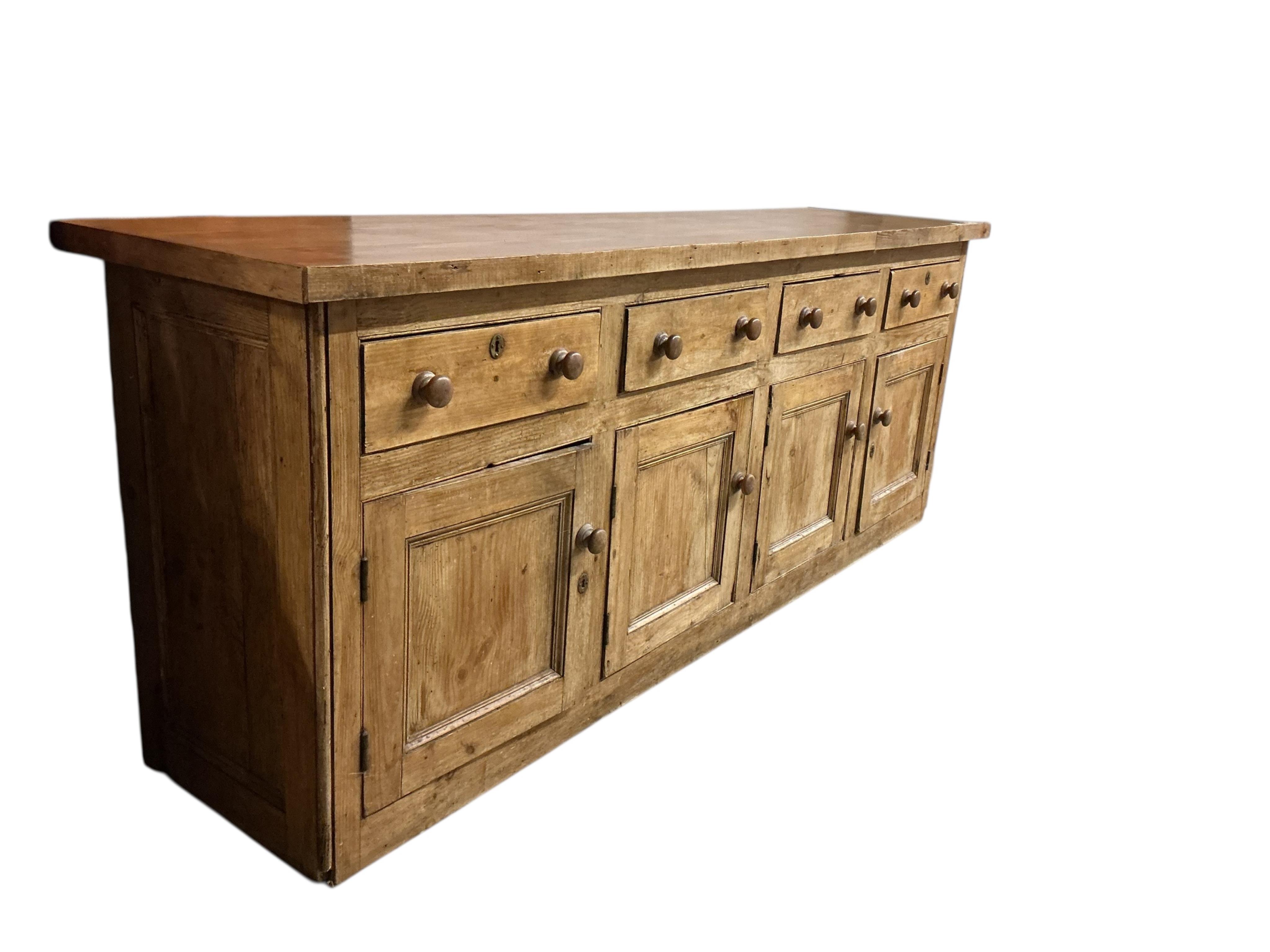 Lot 29 , A Victorian and later pine dresser base, width 252cm, depth 62cm, height 96cm