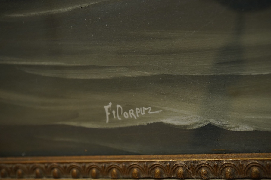 Lot 770 , F. Corpuz (19th/20th. C), Study of a steamship at sea, signed and dated 1910, inscribed 'Antwerp', gouache, 41 x 66cm
