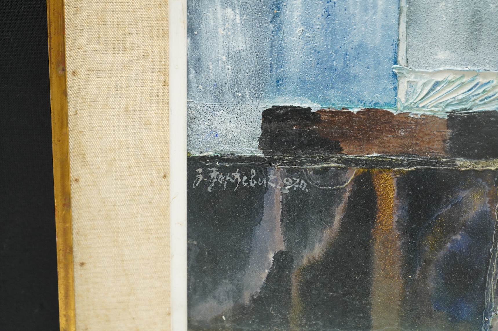 Lot 1709 , Mid century, Russian school, still life of flowers, signed in Cyrillic and dated 1970, textured abstract oil on board, 56 x 51cm