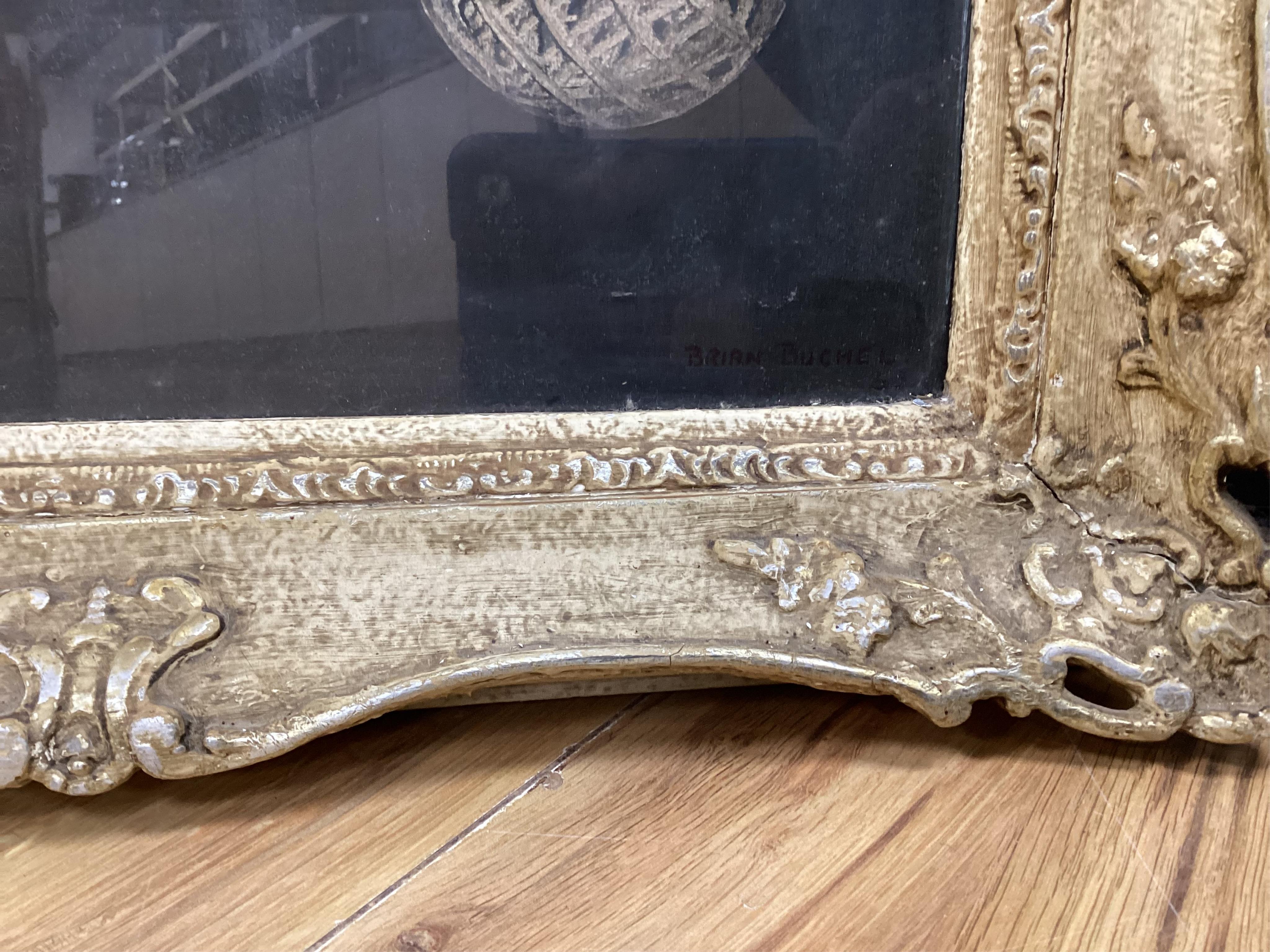 Lot 796 , Brian Buchel (20th. C), still life of flowers, signed, surreal gouache, ornate framed, 56 x 38cm