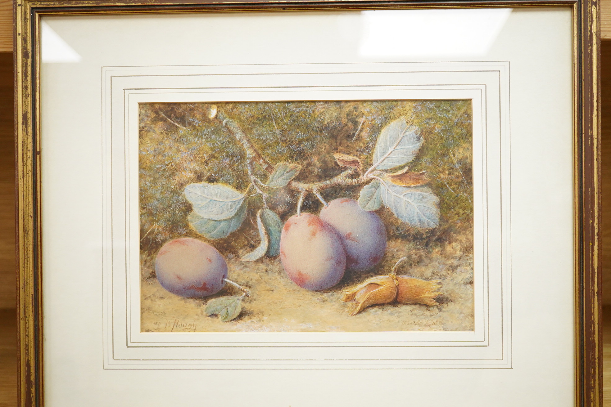 A. L. Holding (1880-1940), Still life of fruit, signed, watercolour, together with a similar example by William Hough (1829-1897), each 17 x 25cm