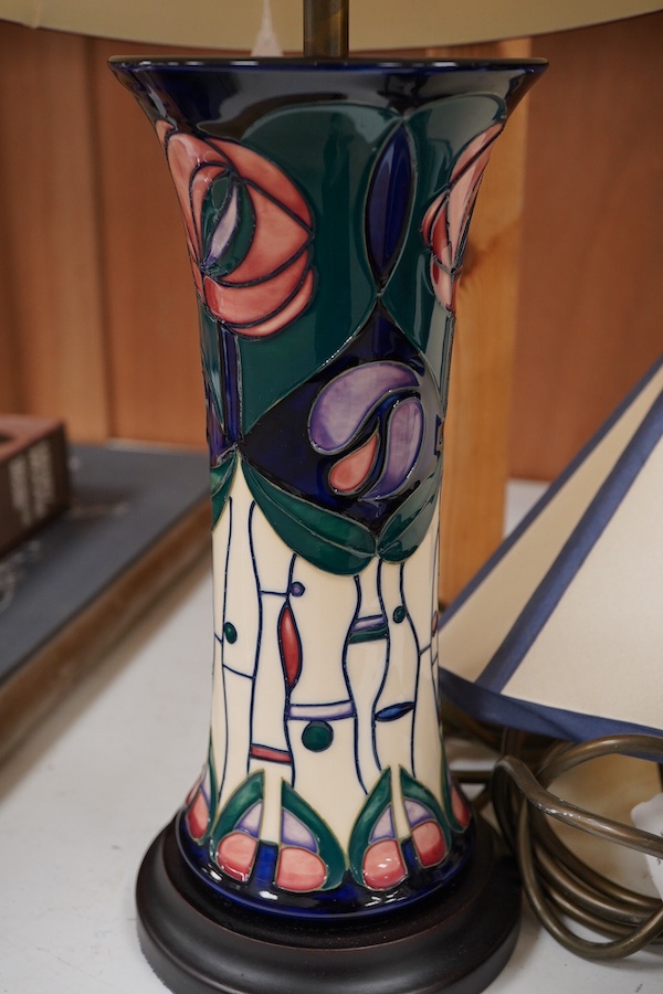 Tow Moorcroft ‘Rennie Macintosh’ style lamps, tallest 28cm
