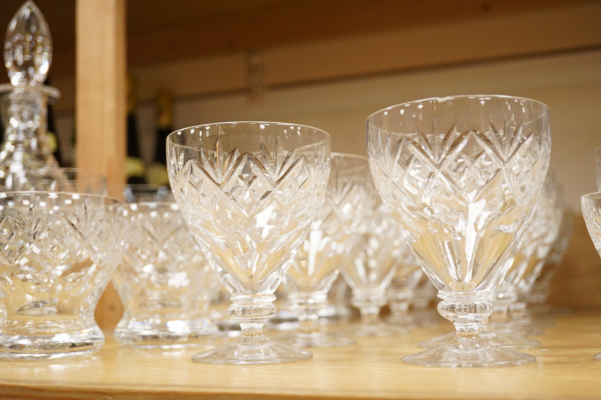 Lot 442 , A collection of Webb cut glass suites and four decanters, together with a glass jug, largest 35cm high