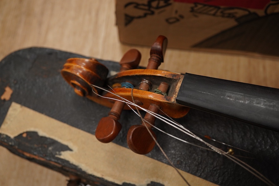 Lot 1343 , A 20th century cased violin with 36cm back