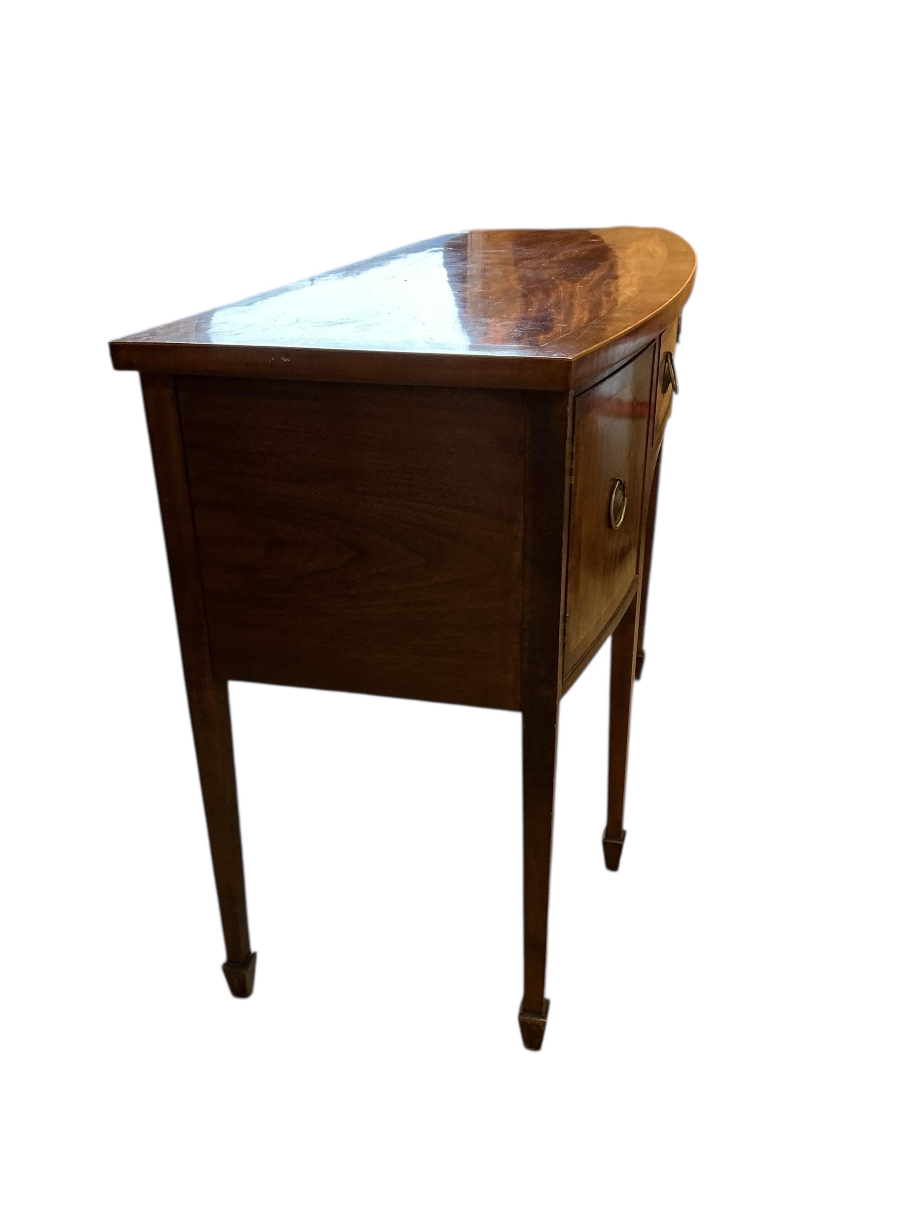 Lot 1100 , A Regency style banded mahogany bowfront sideboard, width 152cm, depth 57cm, height 92cm