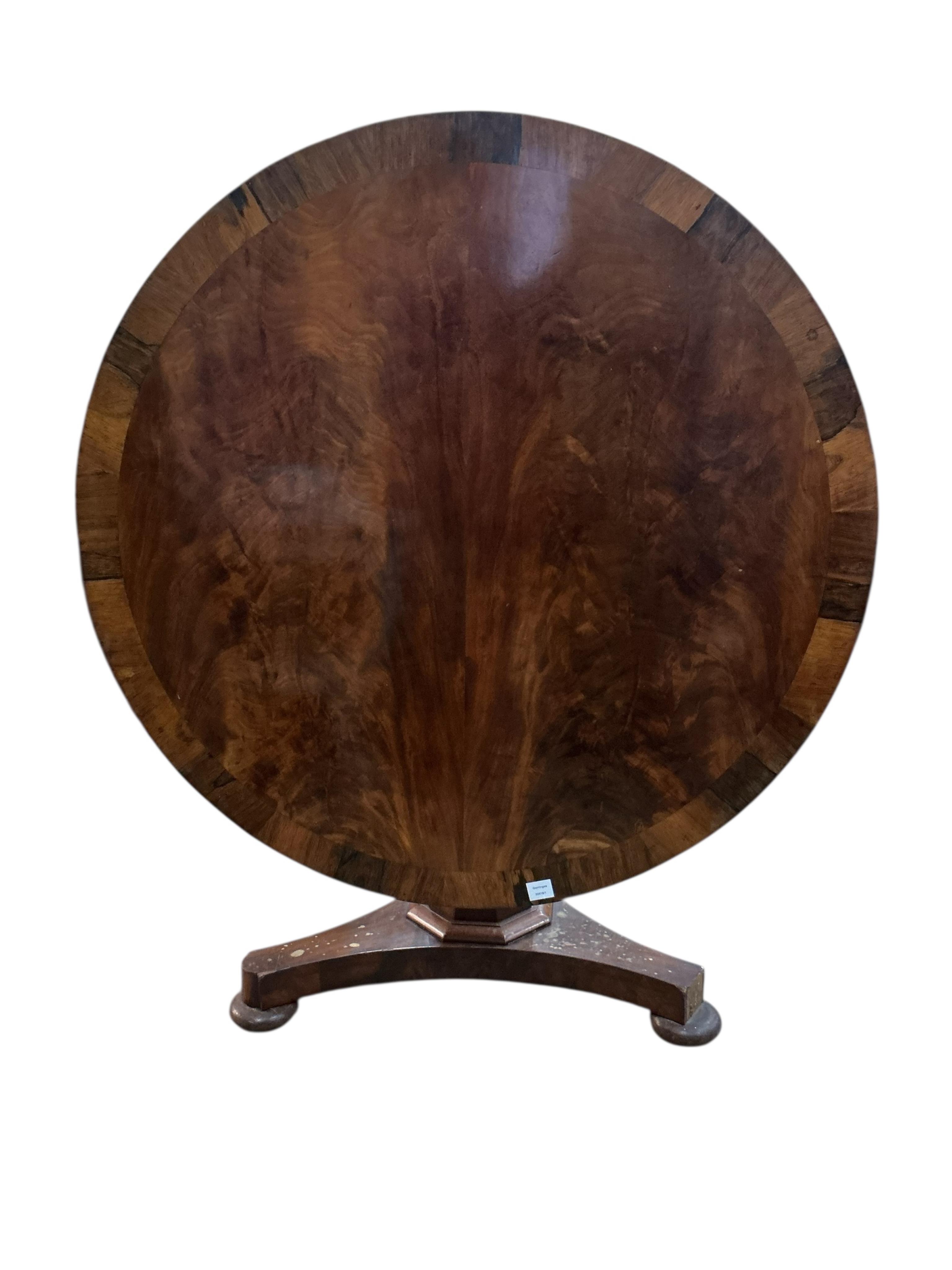Lot 111 , An early Victorian rosewood crossbanded circular mahogany tilt top breakfast table, diameter 120cm, height 71cm