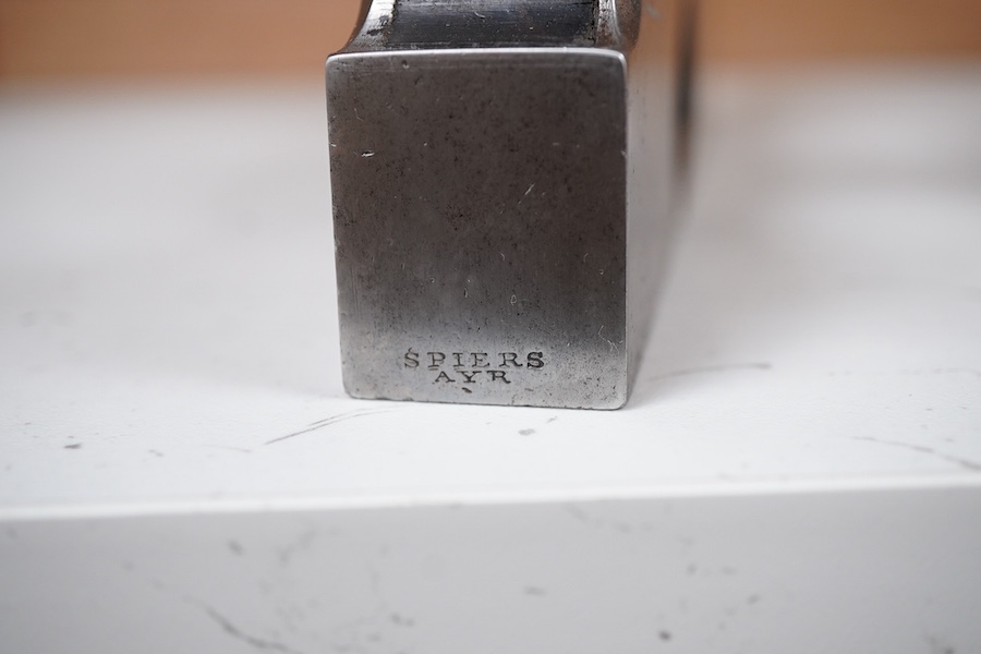 Lot 1028 , A Spiers shoulder plane with rosewood infill and wedge, with John Bull No.17 1” iron, stamped ‘Spiers, Ayr’ to the front, and ‘malleable’ to the back, the sole 20.5cm long