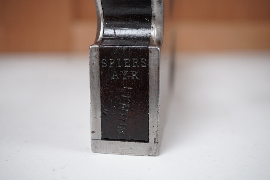 A Spiers shoulder plane with rosewood infill and wedge, with Thomas Ibbotson 1” iron, stamped ‘Spiers, Ayr’ to the front infill, and with several light owner’s stamps to the infill, the sole 20.5cm long