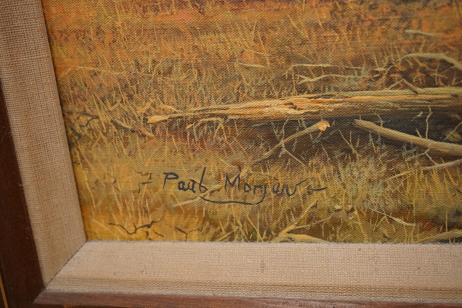 Paul Morgan (British, b.1940), 'Timber Hauling', signed, ex. Stacy Marks, oil on canvas, 50 x 100cm