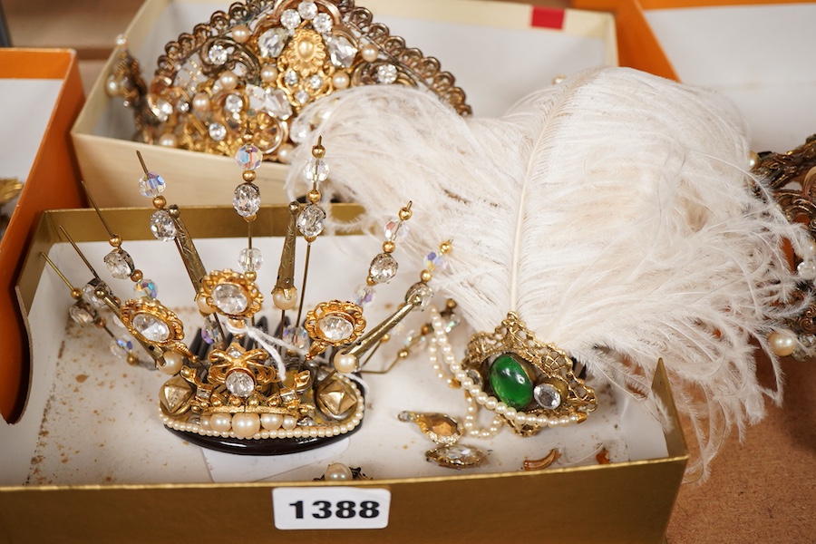 Lot 1388 , Theatrical costume jewellery: two hair ornaments, gilt-metal chain belt - 108cm long and pearl tiara and choker etc.