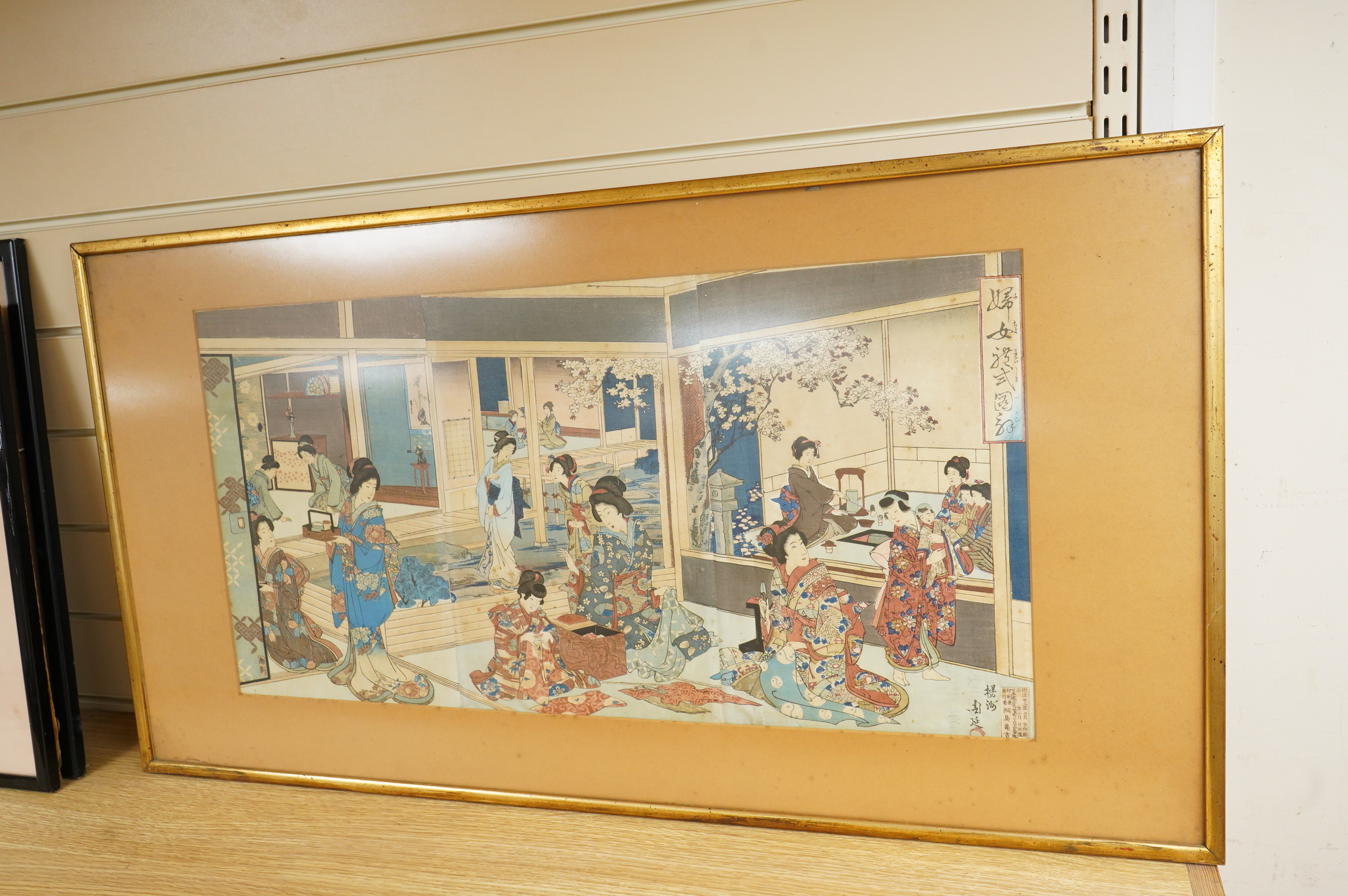 Toyohara Chikanobu (1838-1912), ‘Illustration of Women’s Customs and Mannwes Ceremony’, Japanese woodblock triptych, 35 x 68cm