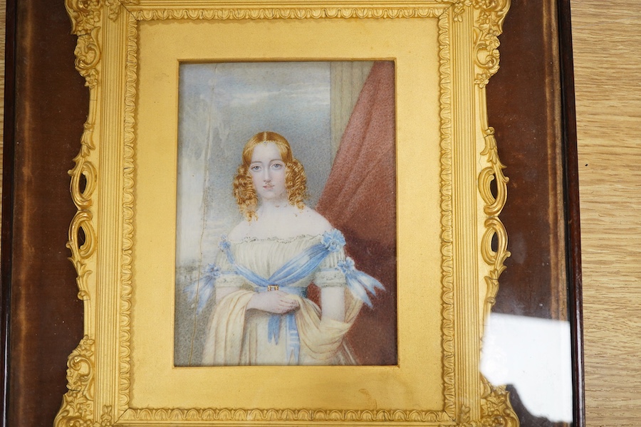 Early Victorian school, portrait miniature of a young girl, watercolour on ivory, in presentation frame, and another vacant frame, largest overall 31 x 27cm CITES Submission reference, SE1FLWZQ
