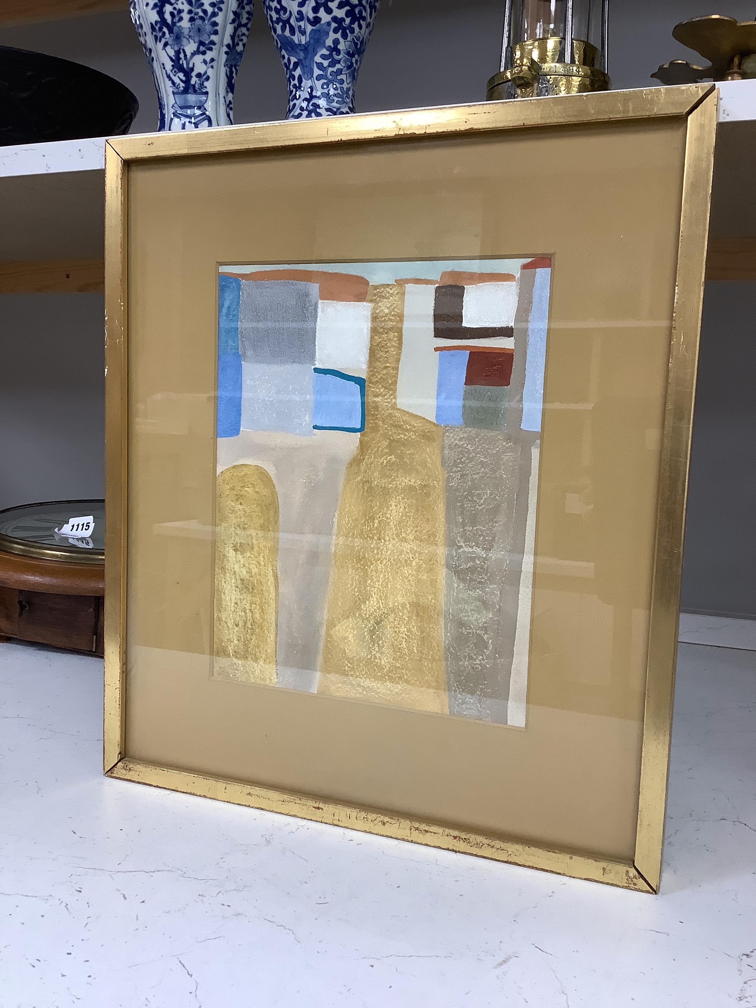 Abstract composition, unsigned, possibly by Philip Hughes, mixed media and gouache, 29 x 22cm