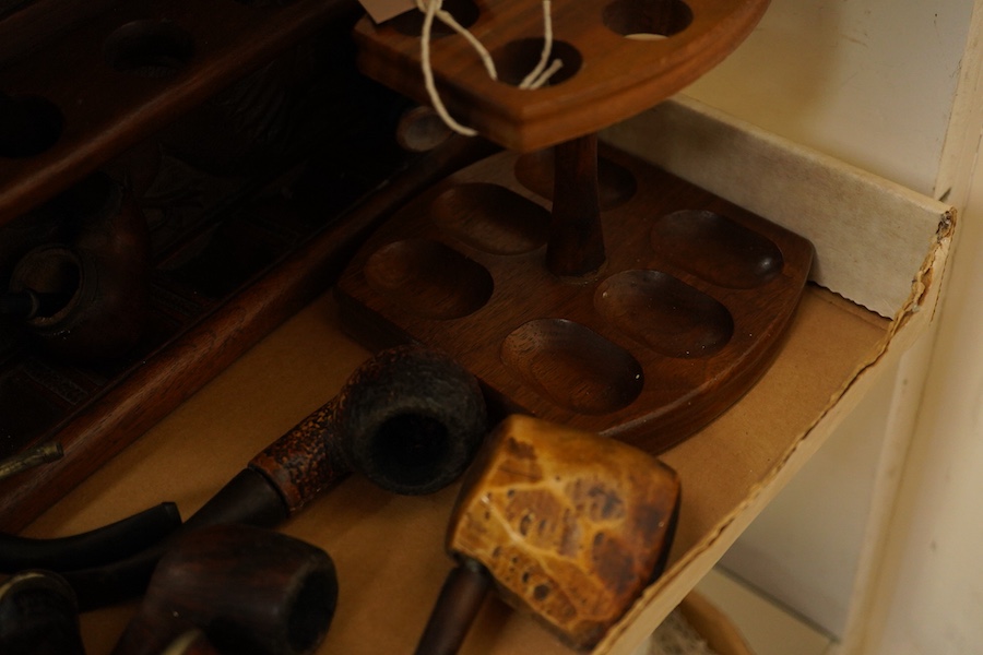 Lot 424 , A collection of smoker's novelty pipes and three pipe racks