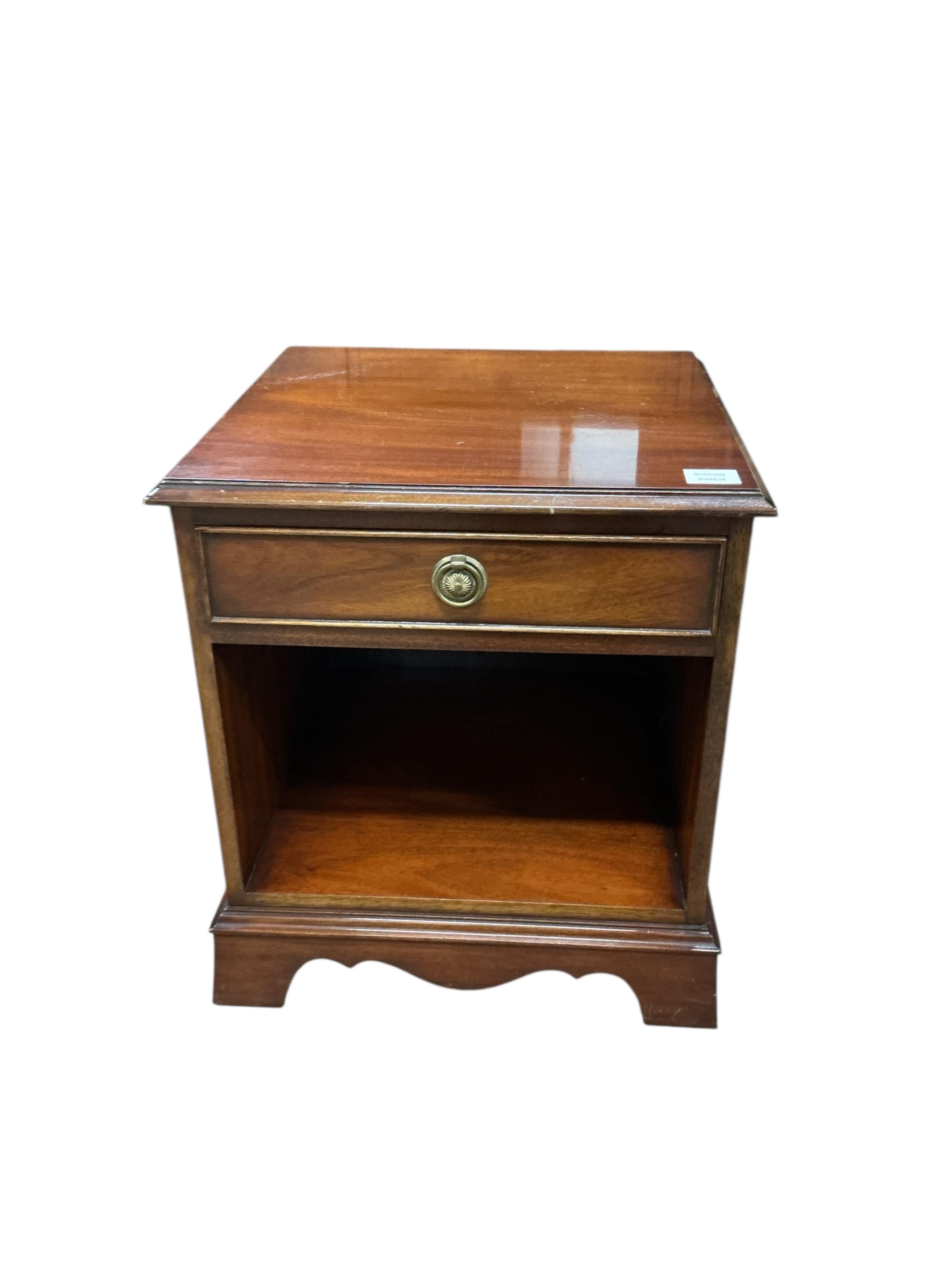 A pair of reproduction mahogany bedside cabinets, width 49cm, depth 46cm, height 55cm