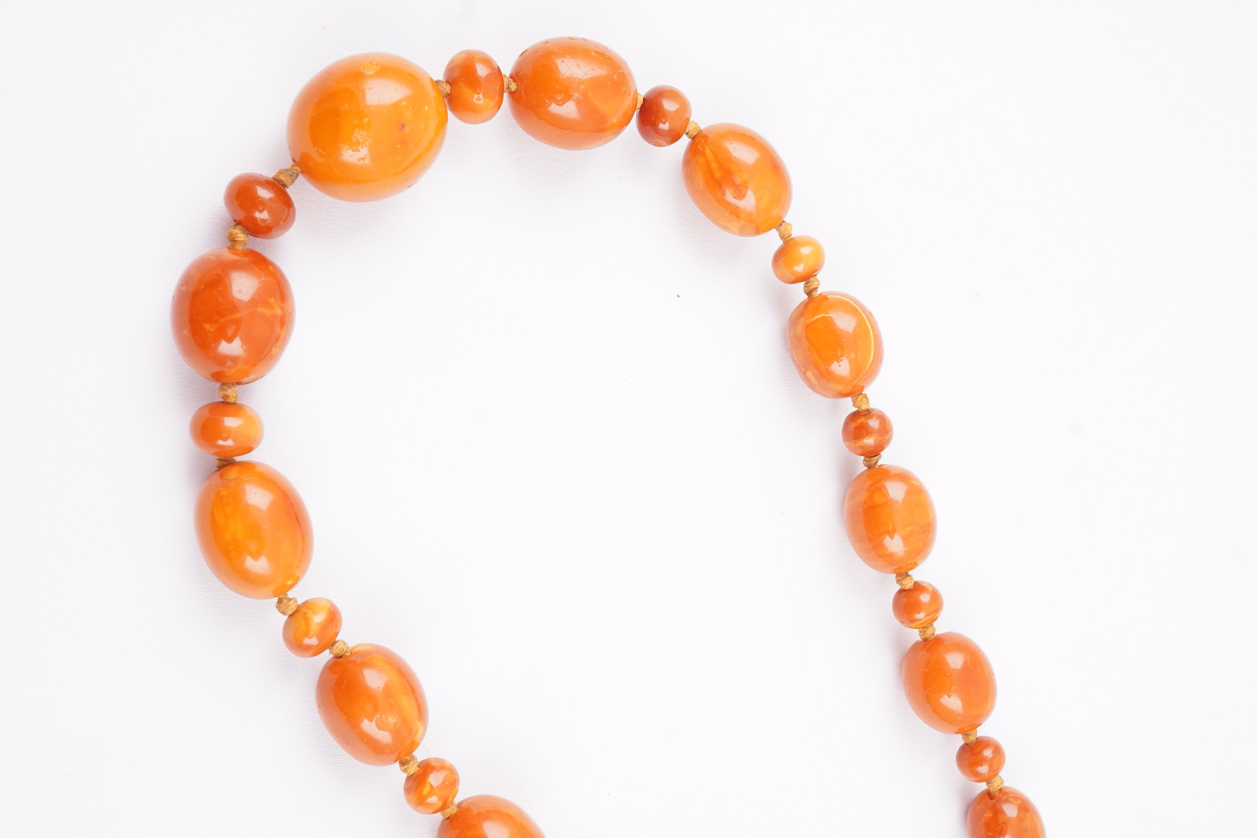 In good condition, some minor chipping and wear typical of age. Amber with pleasant mottling and rich colour, some of the smaller beads towards the back with green discoloration - some with minor crazing.