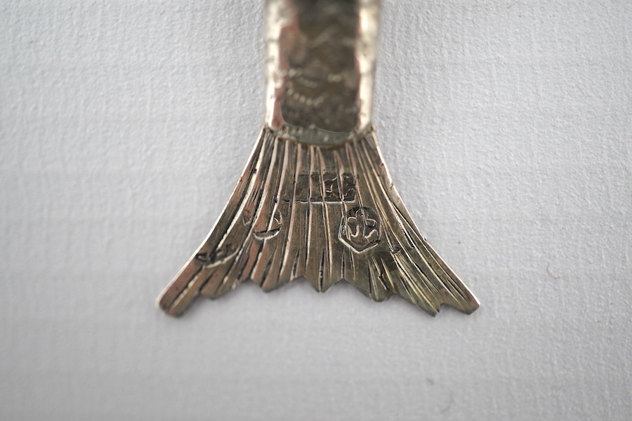 A 19th century silver novelty vinaigrette modelled as an articulated fish, indistinct marks, Birmingham assay only visible, 83mm.